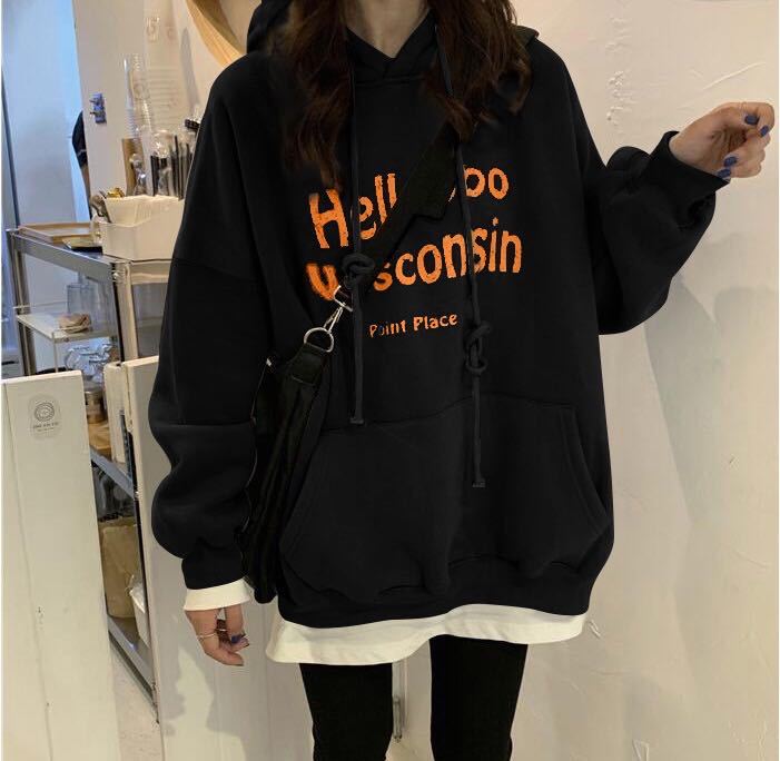 韓系秋冬加絨加厚舒適學生寬鬆慵懶風連帽衫