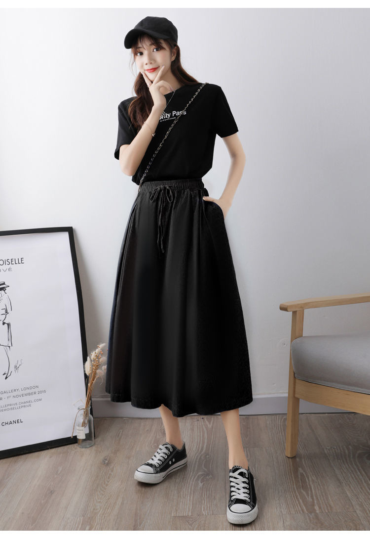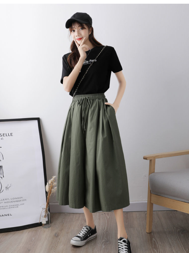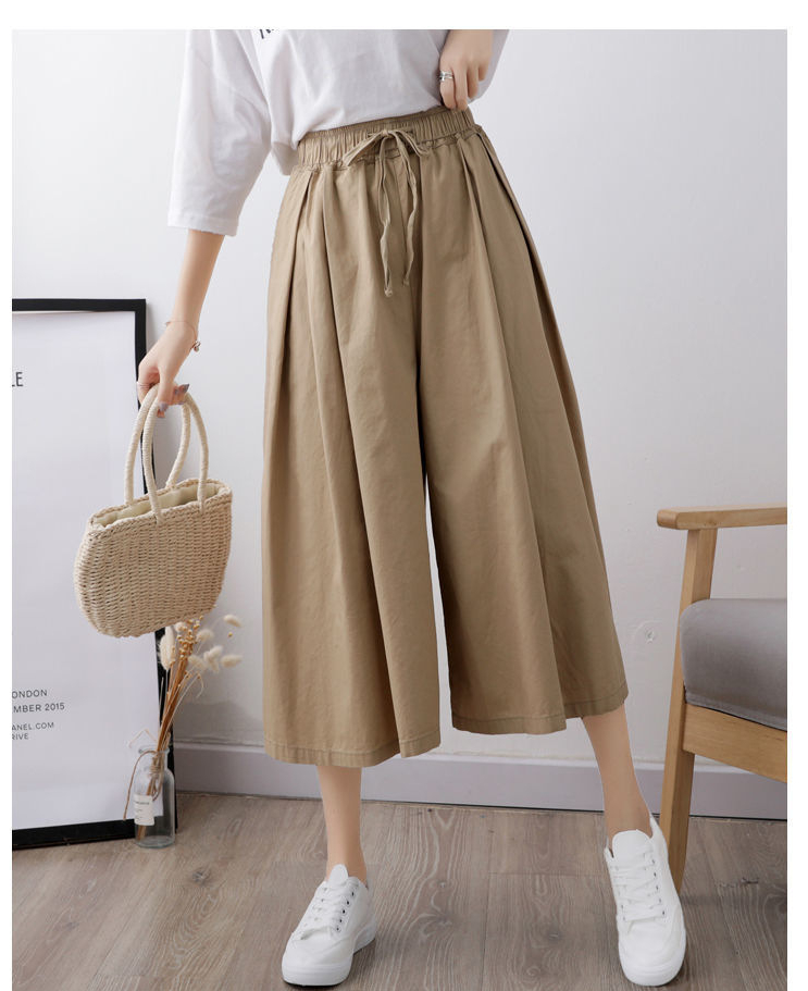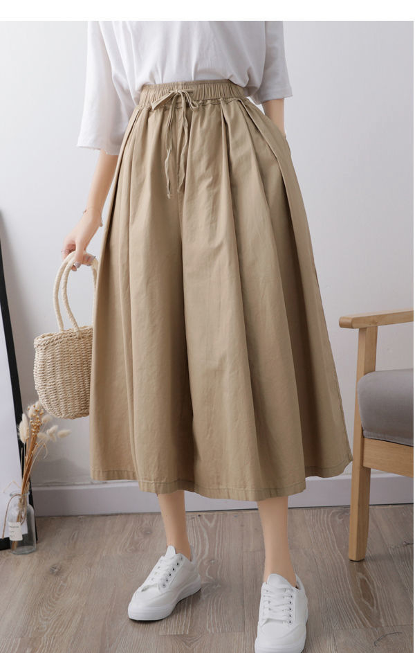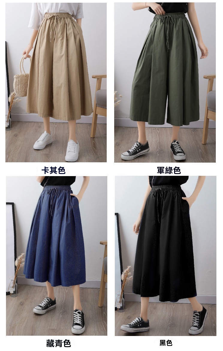 四季可穿森女系闊腿寬鬆高腰休閒九分褲裙