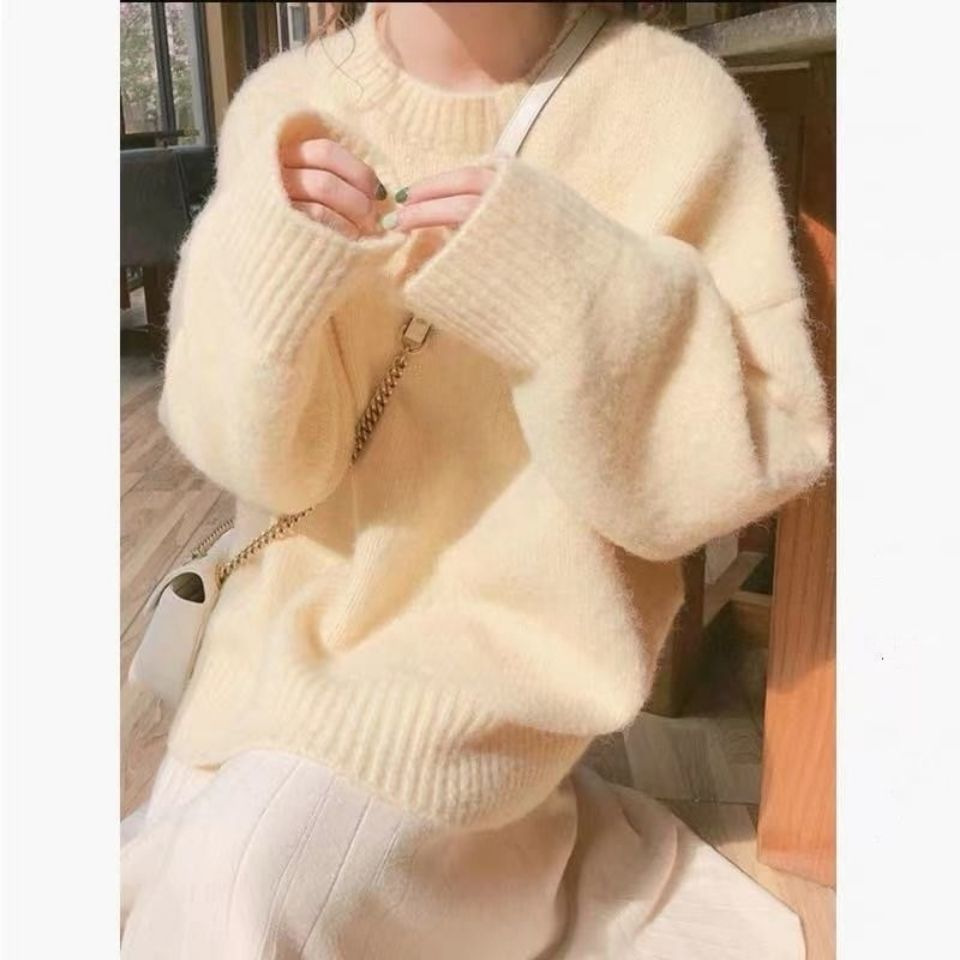 厚實純色軟糯慵懶風套頭百搭圓領厚款針織衫