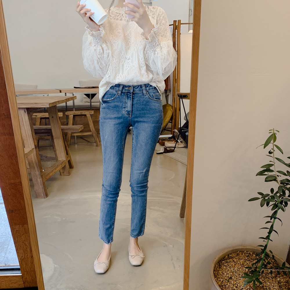 簡約休閒高腰遮胯顯瘦彈力喇叭牛仔褲