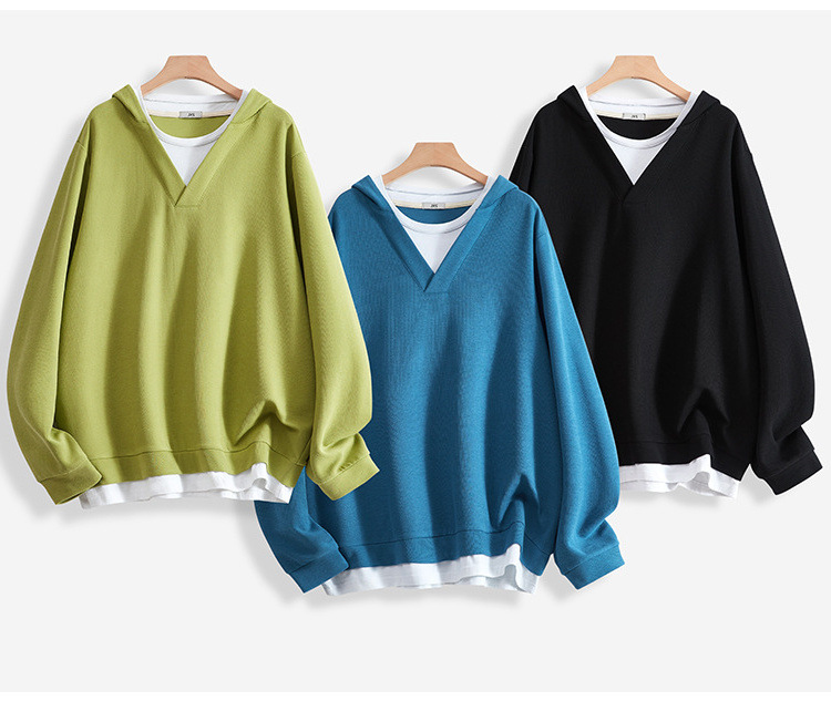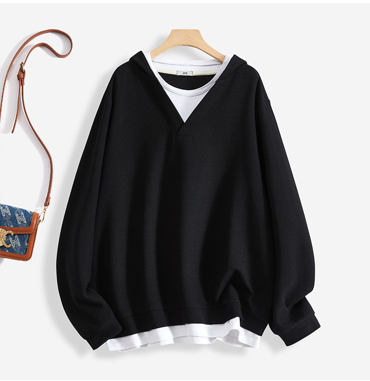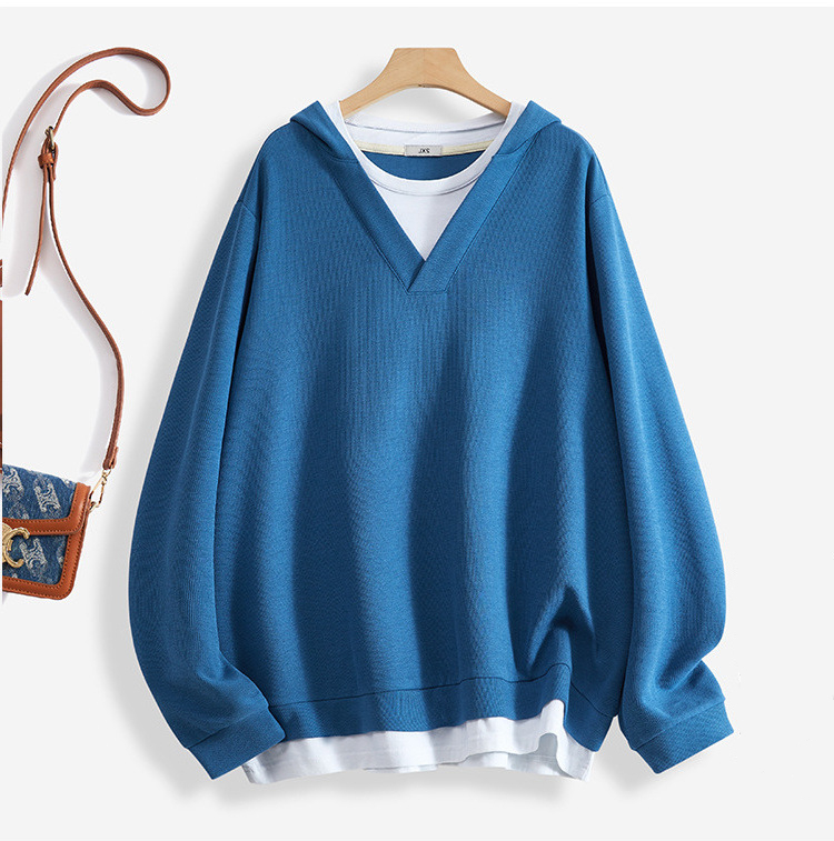 薄款純棉韓版無帽寬鬆套頭圓領假兩件長袖T恤