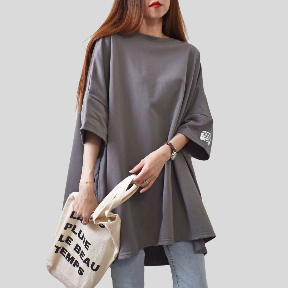 夏季中長款寬鬆休閒顯瘦大碼短袖T恤