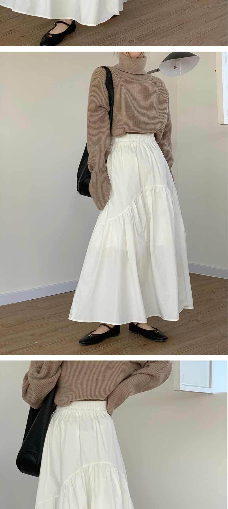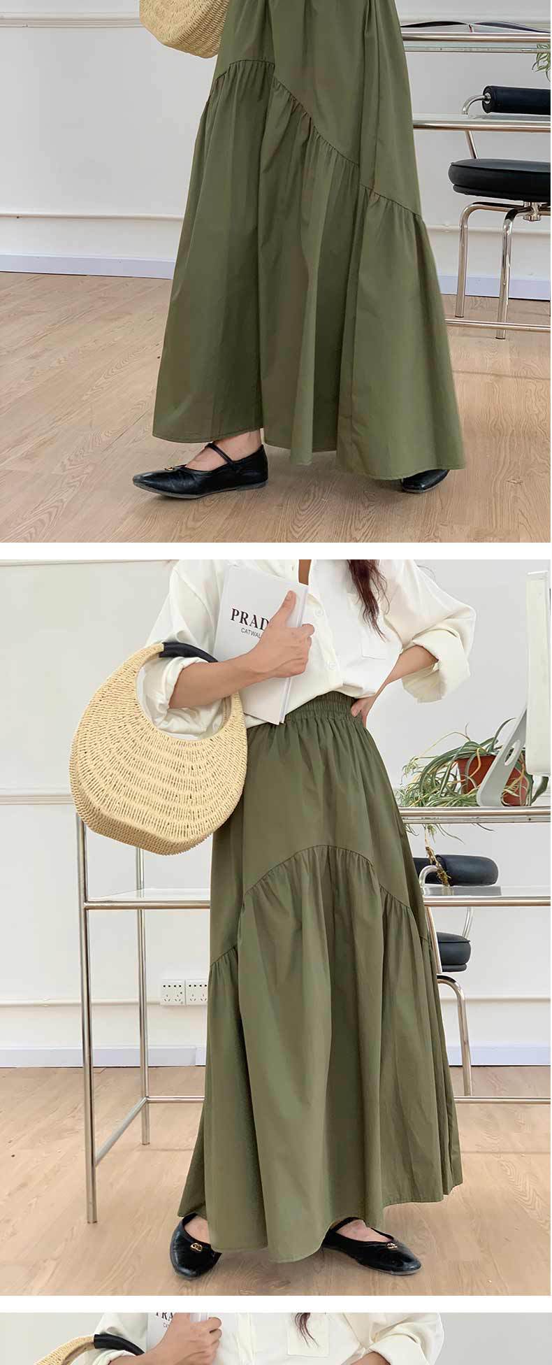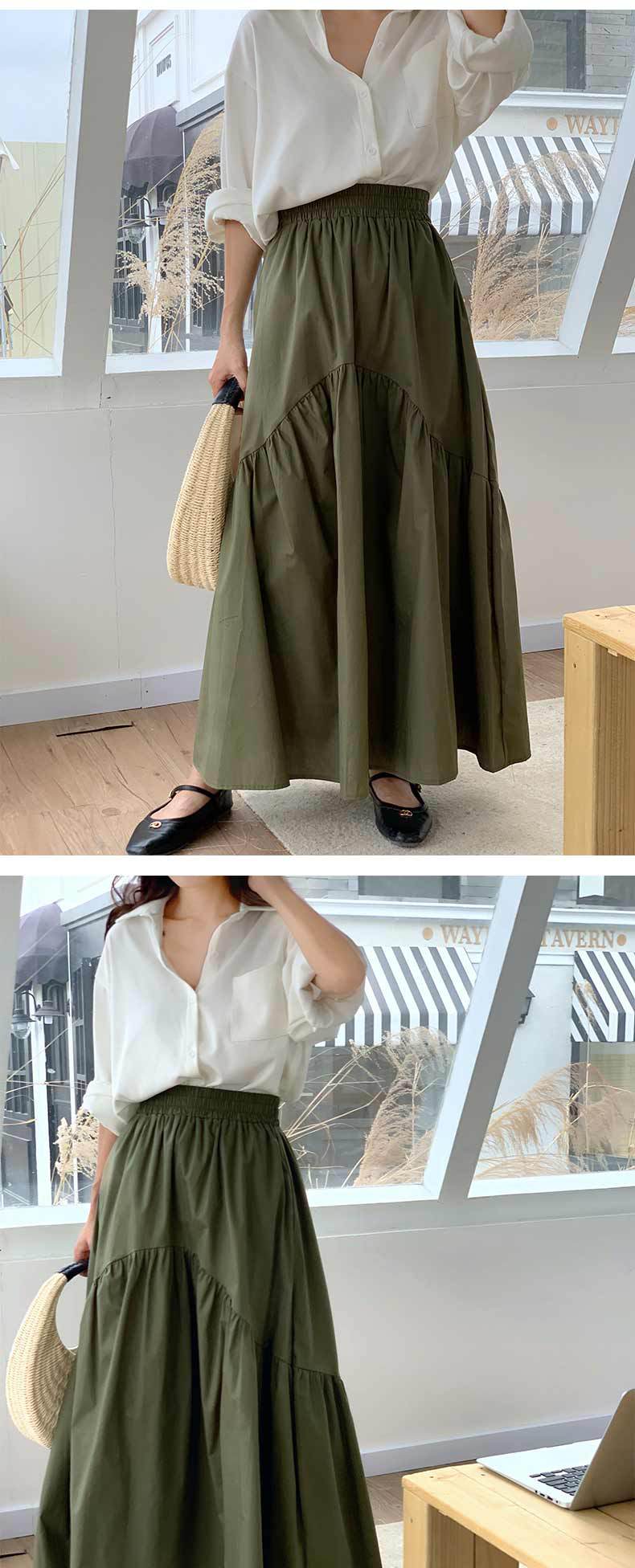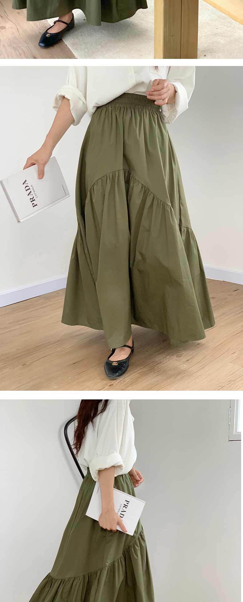 休閒百搭復古波浪抽褶高腰純色魚尾裙大擺半身裙