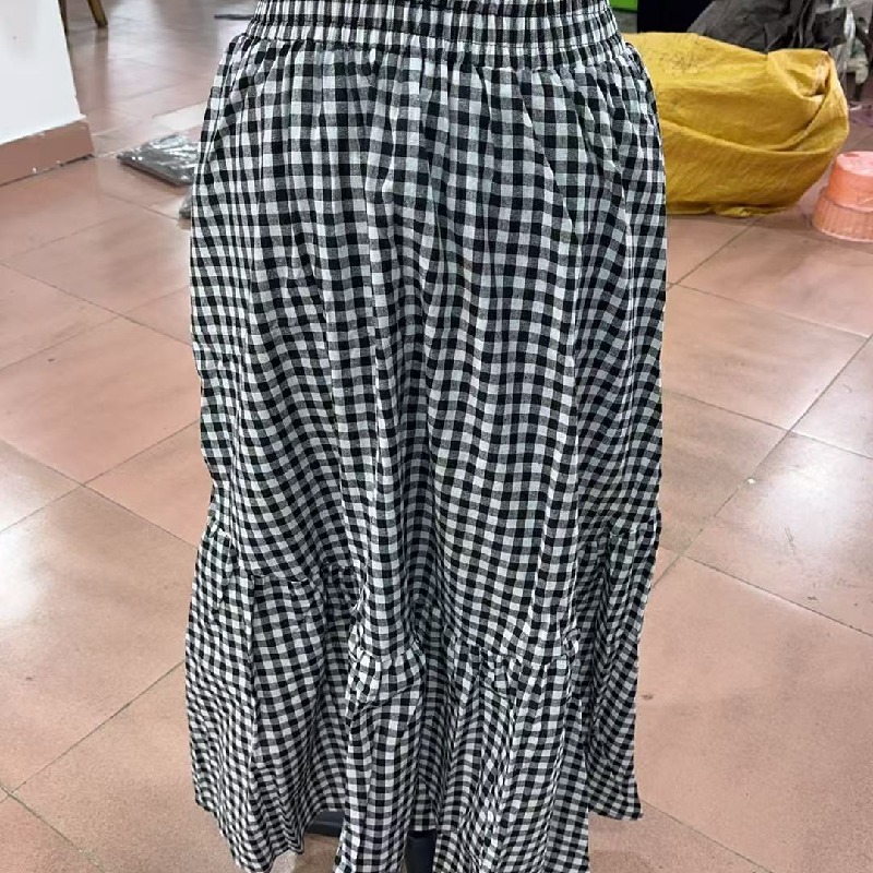 復古鬆緊腰高級感格子毛呢A字半身裙