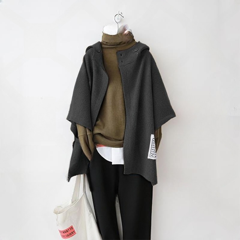 秋冬連帽落肩蝙蝠袖不規則開衫