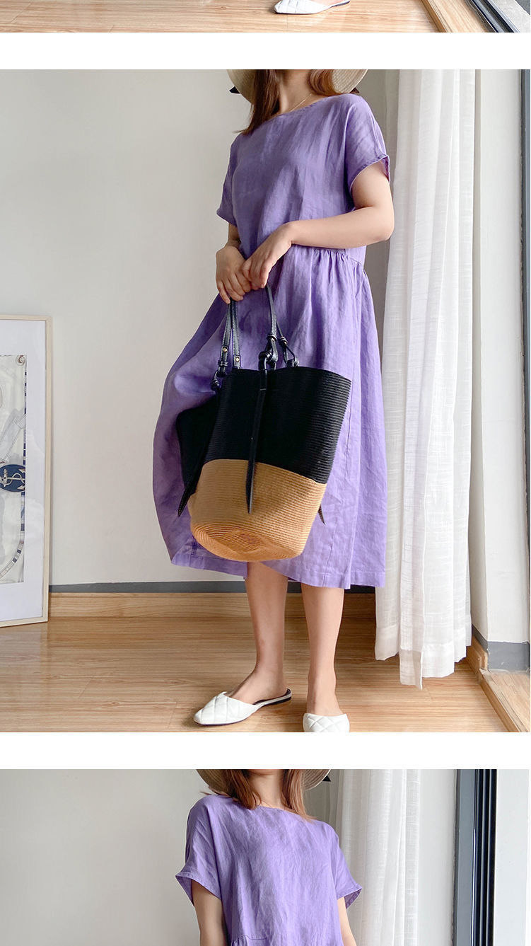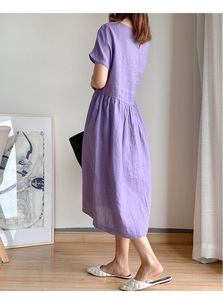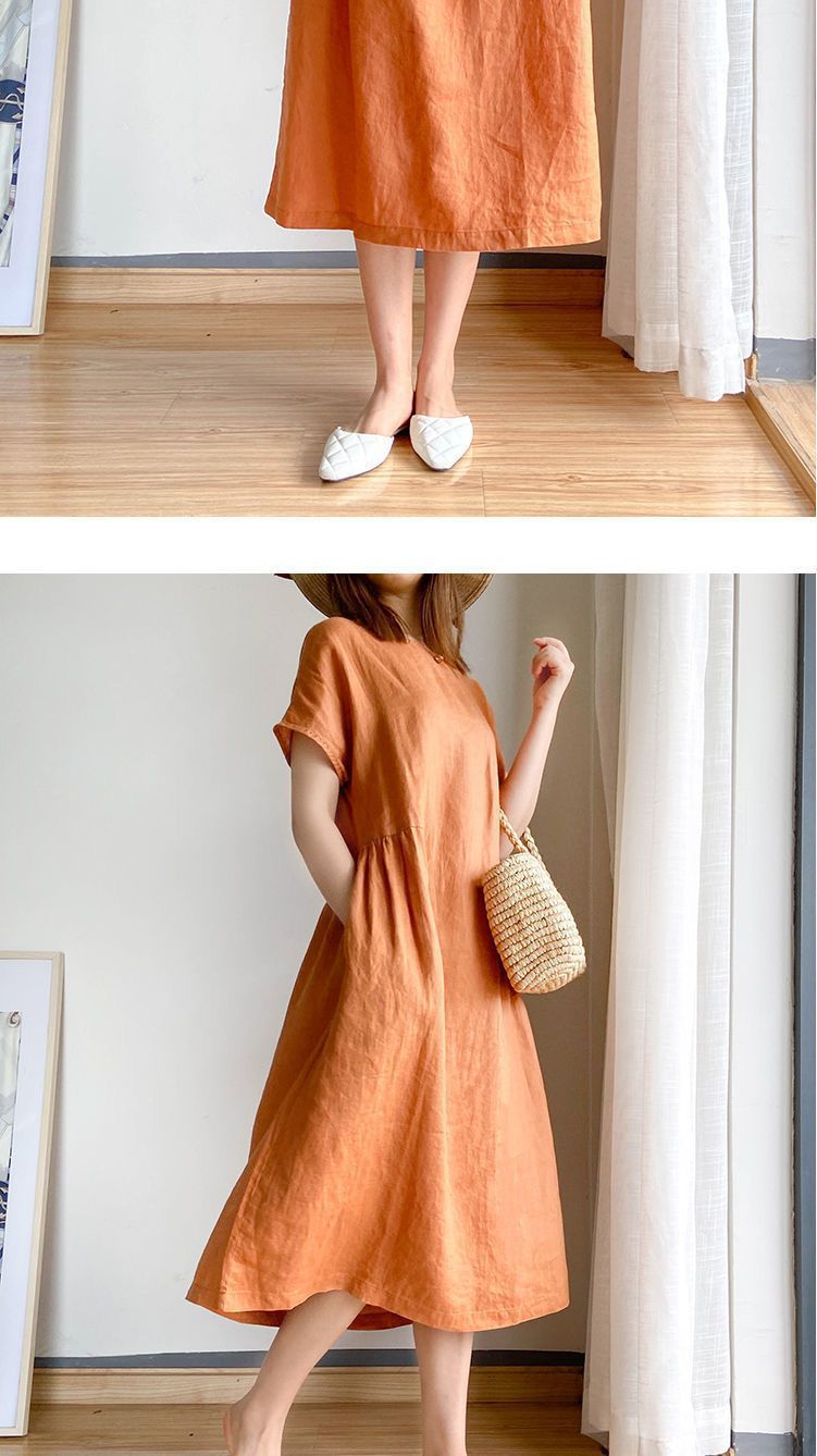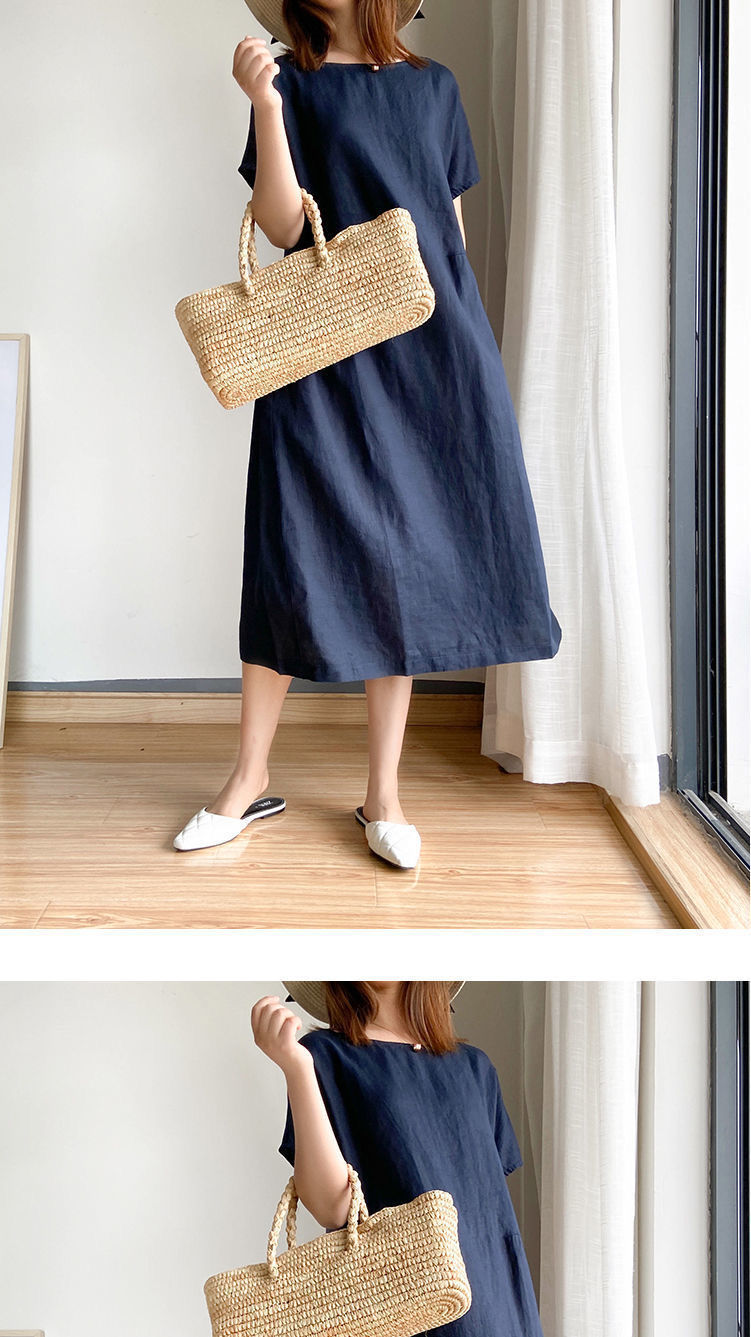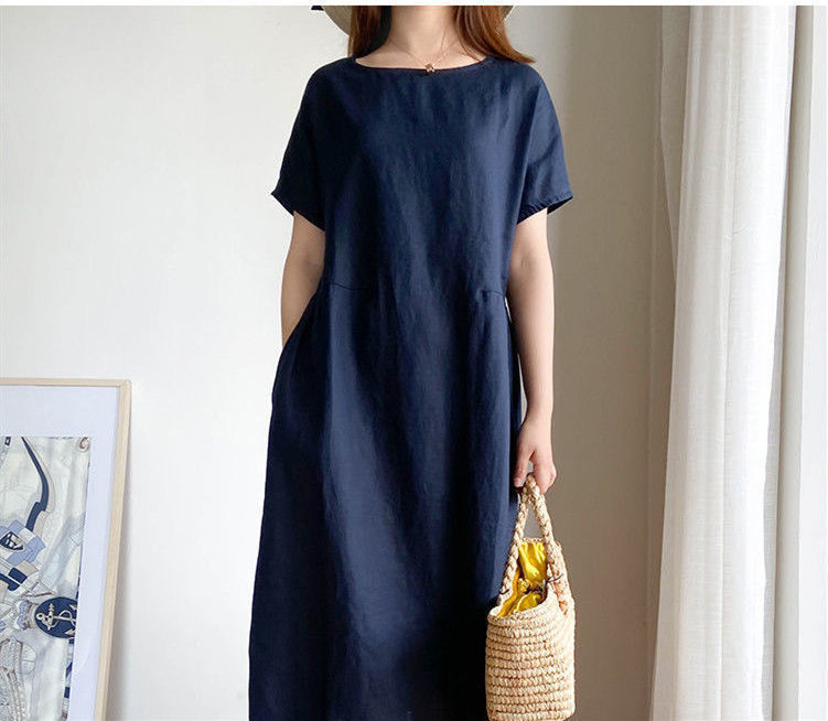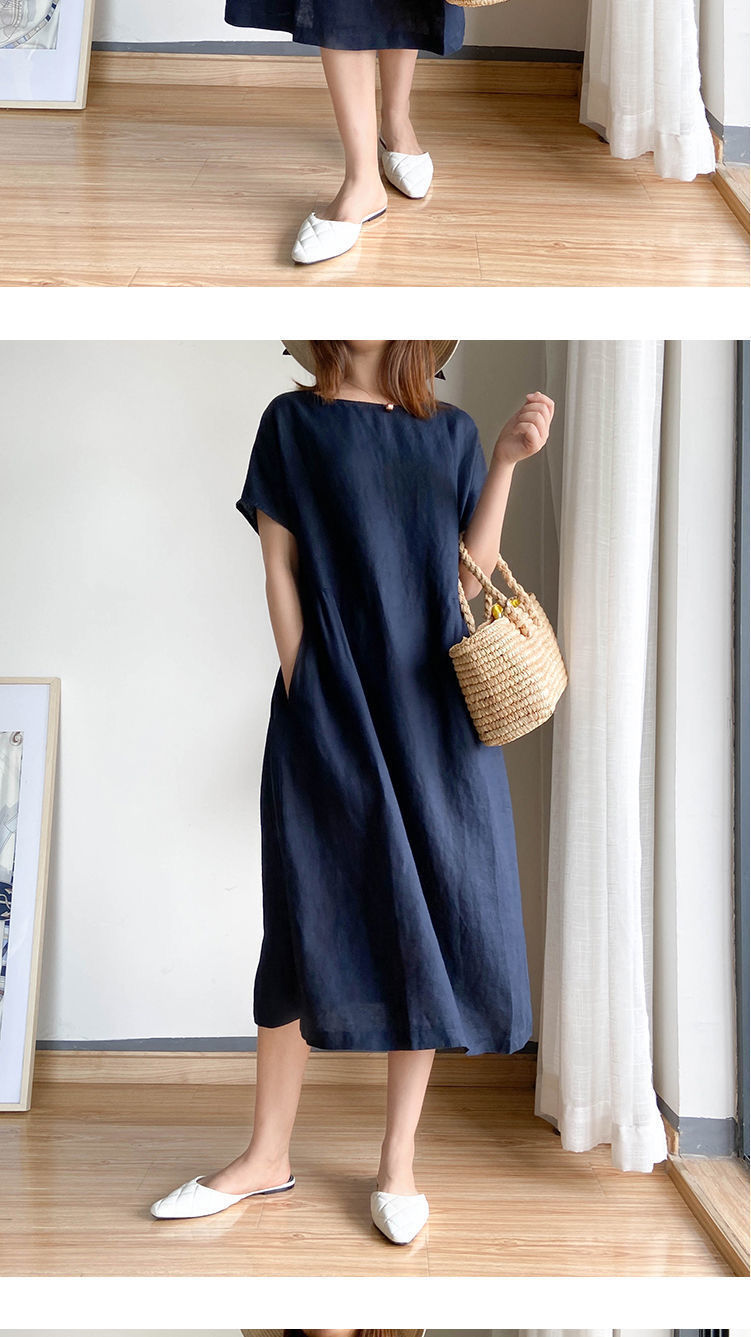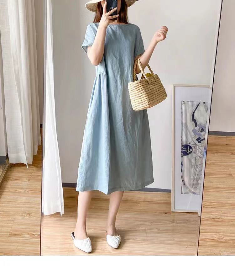氣質文藝簡約寬鬆顯瘦純色中長洋裝
