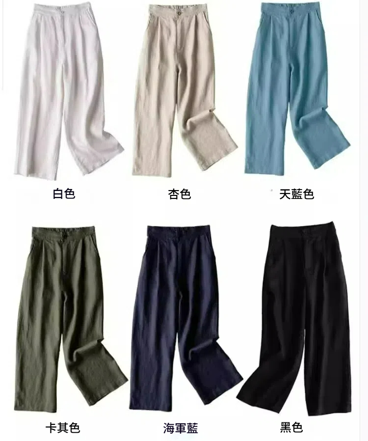 涼感純色舒適闊腿棉麻寬鬆休閒褲