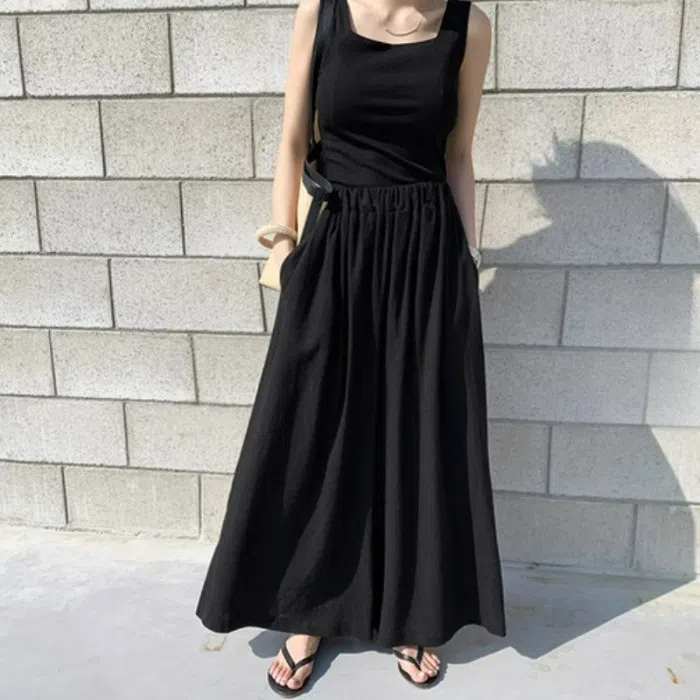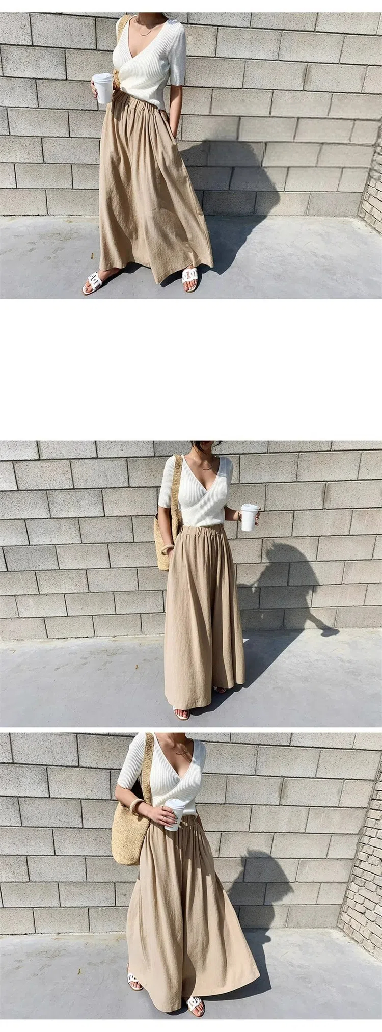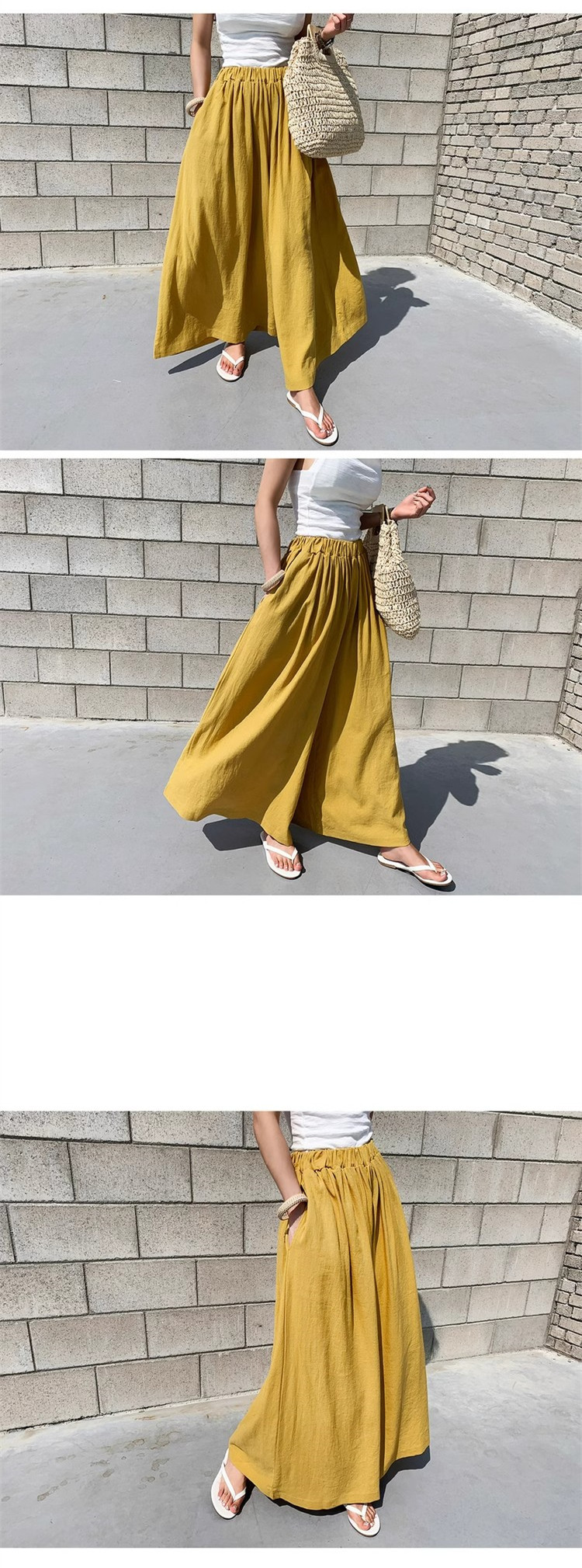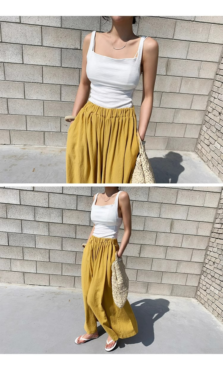 時尚寬鬆高腰闊腿純色休閒大脚裙褲