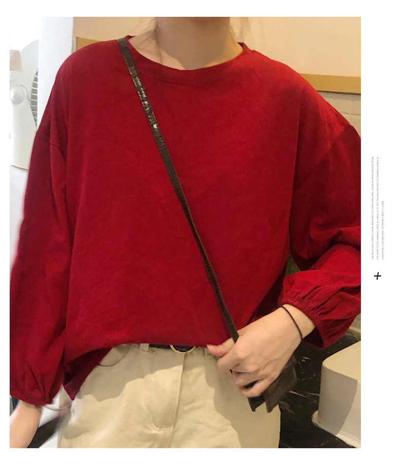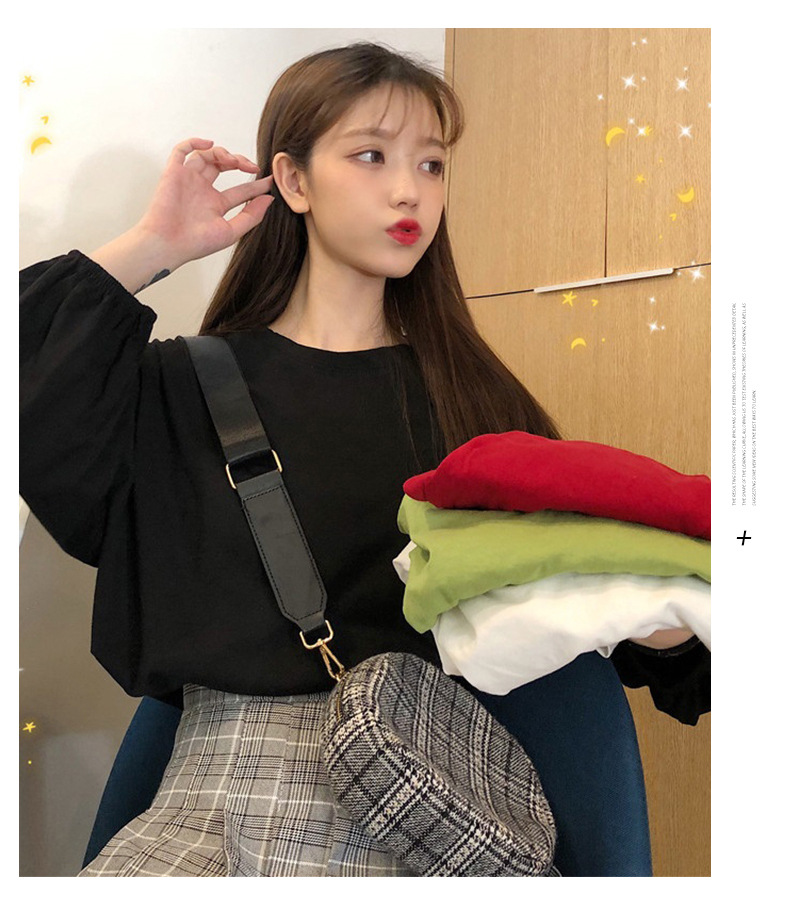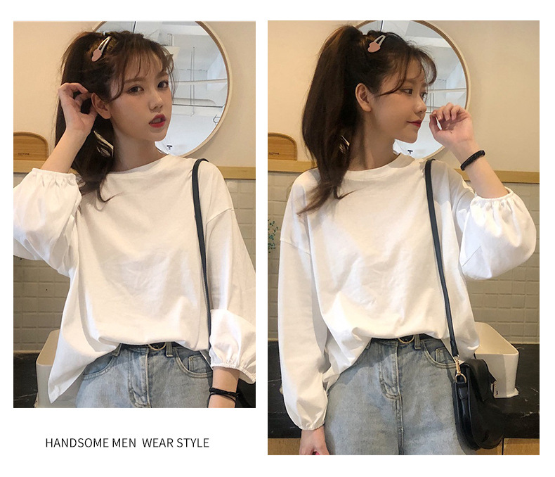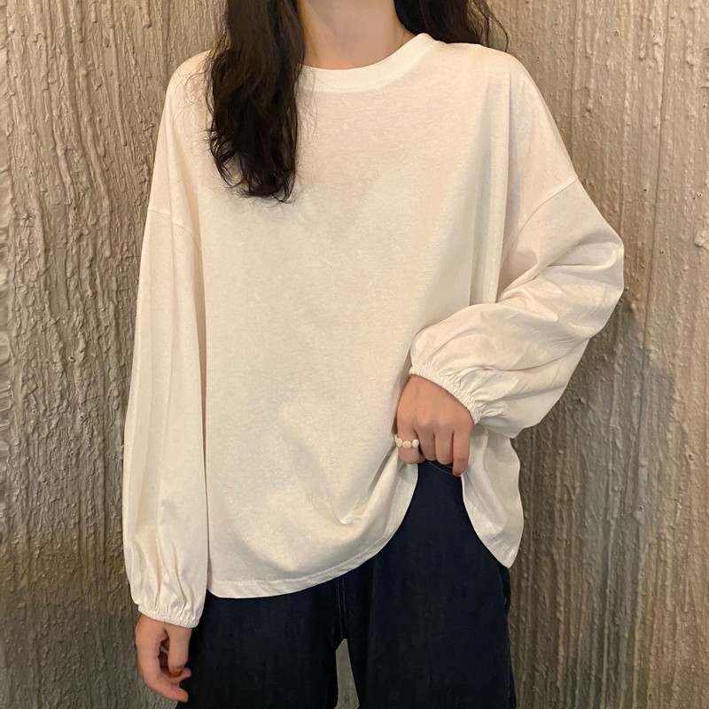 簡約寬鬆百搭燈籠袖純色長袖T恤