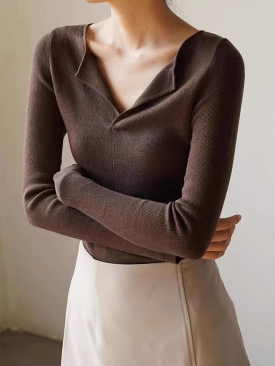 純色修身顯瘦减齡V領針織打底衫