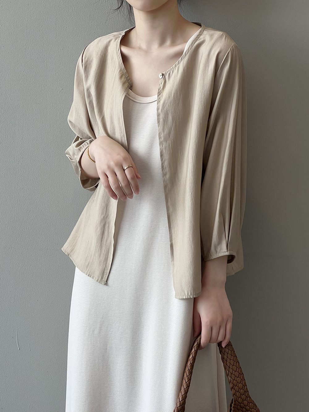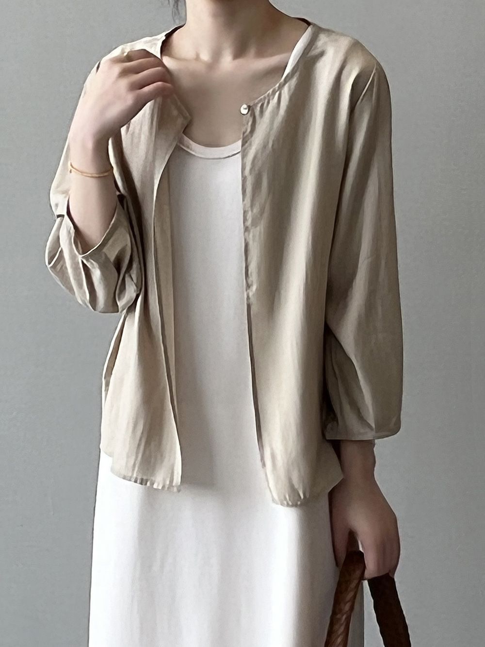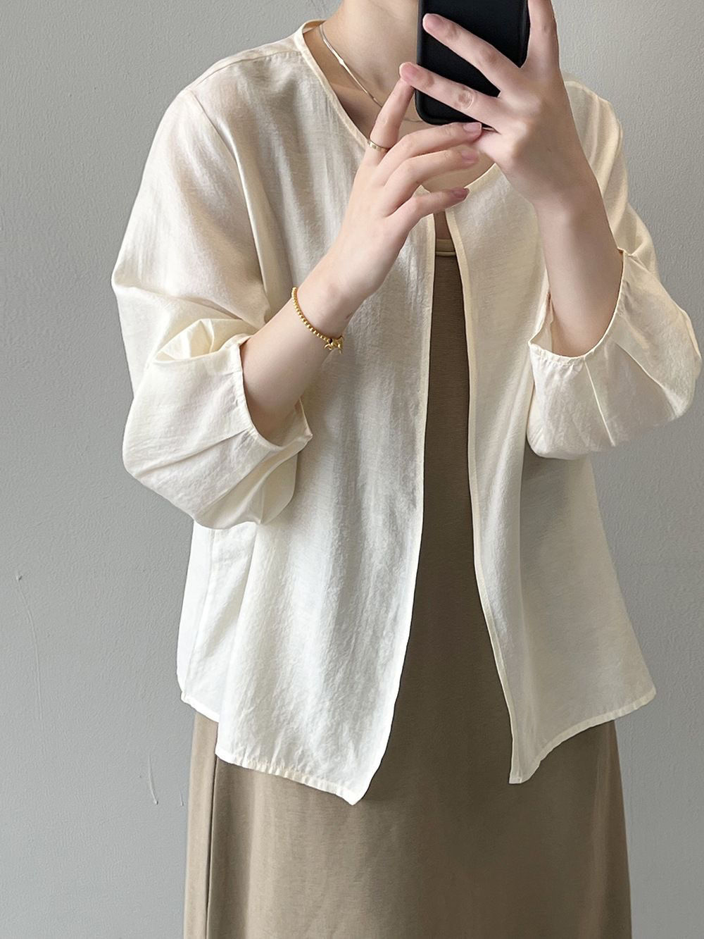 韓系寬鬆休閒百搭薄款圓領七分袖防曬開衫