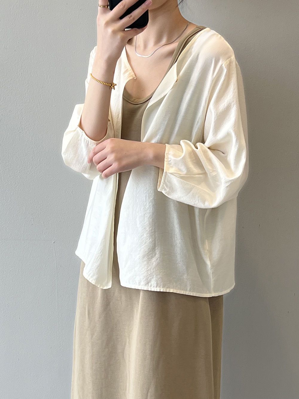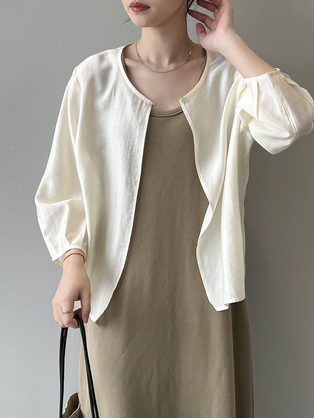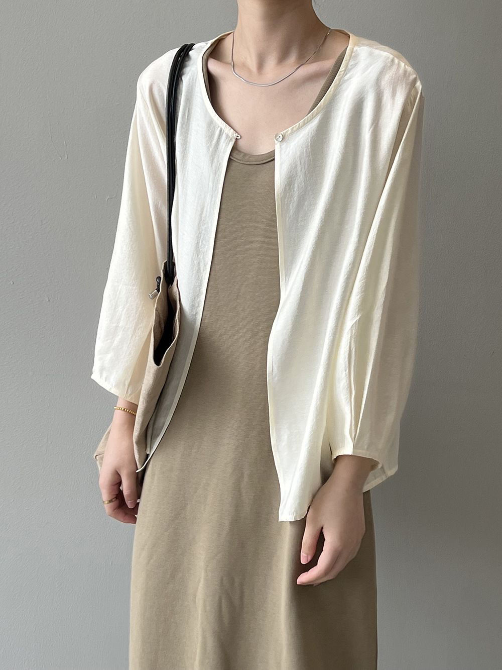 韓系寬鬆休閒百搭薄款圓領七分袖防曬開衫