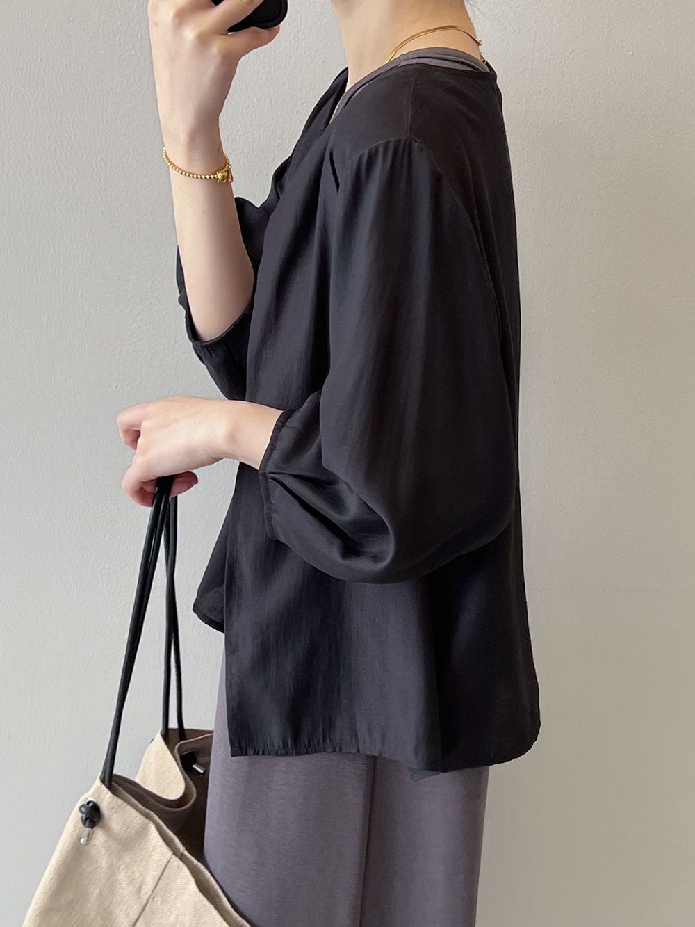 純色v領百搭寬鬆顯瘦打底長袖T恤