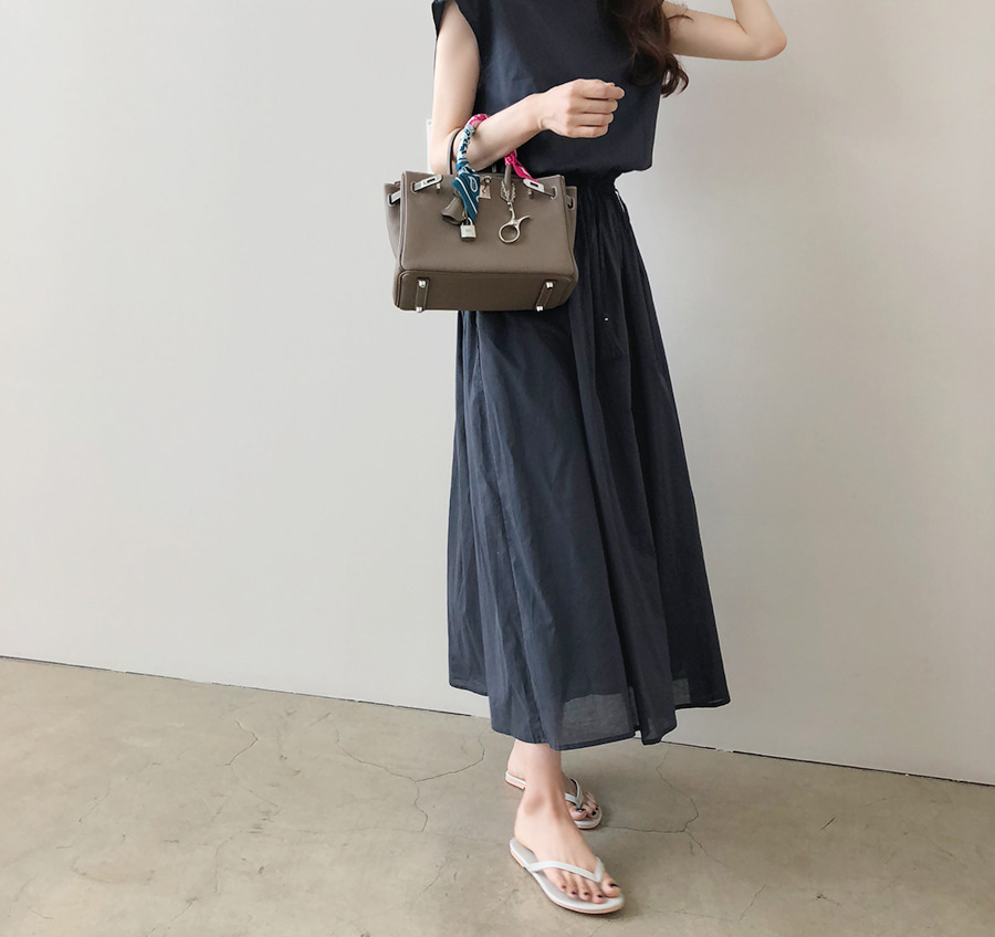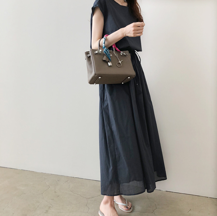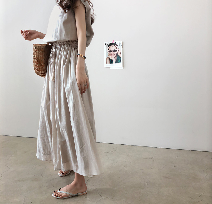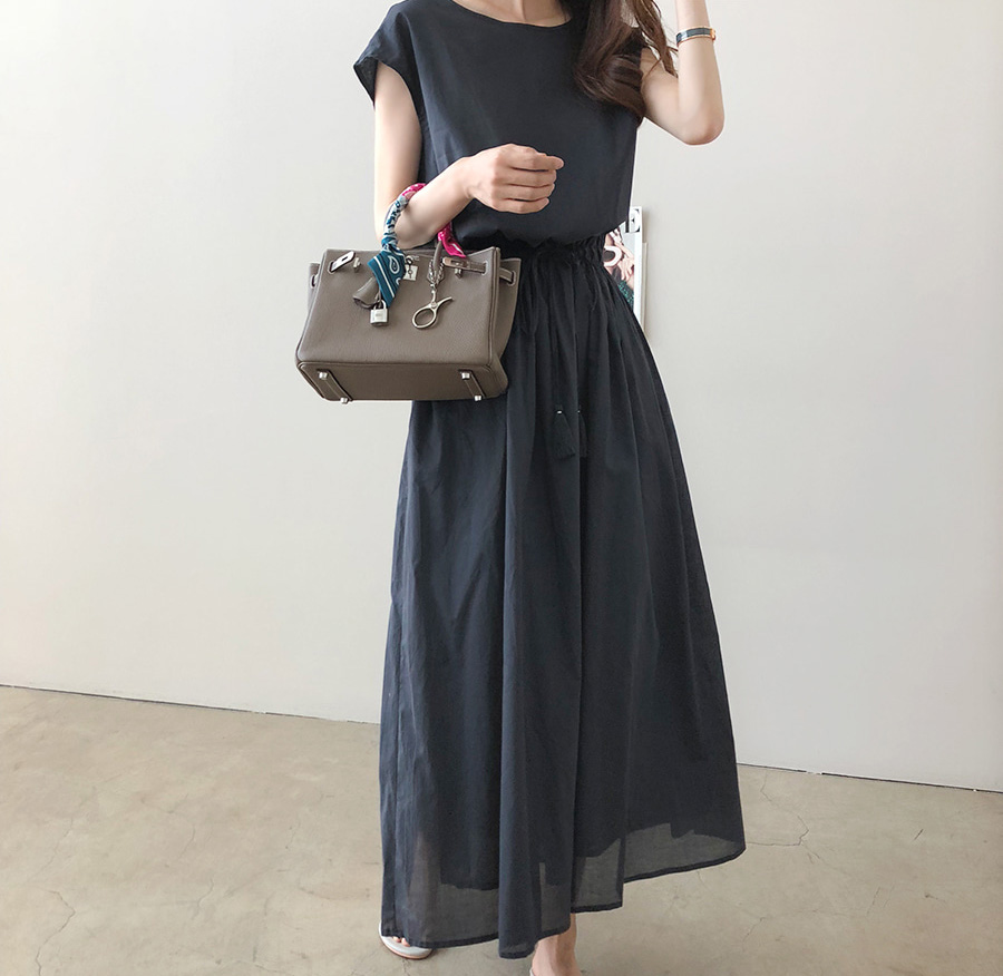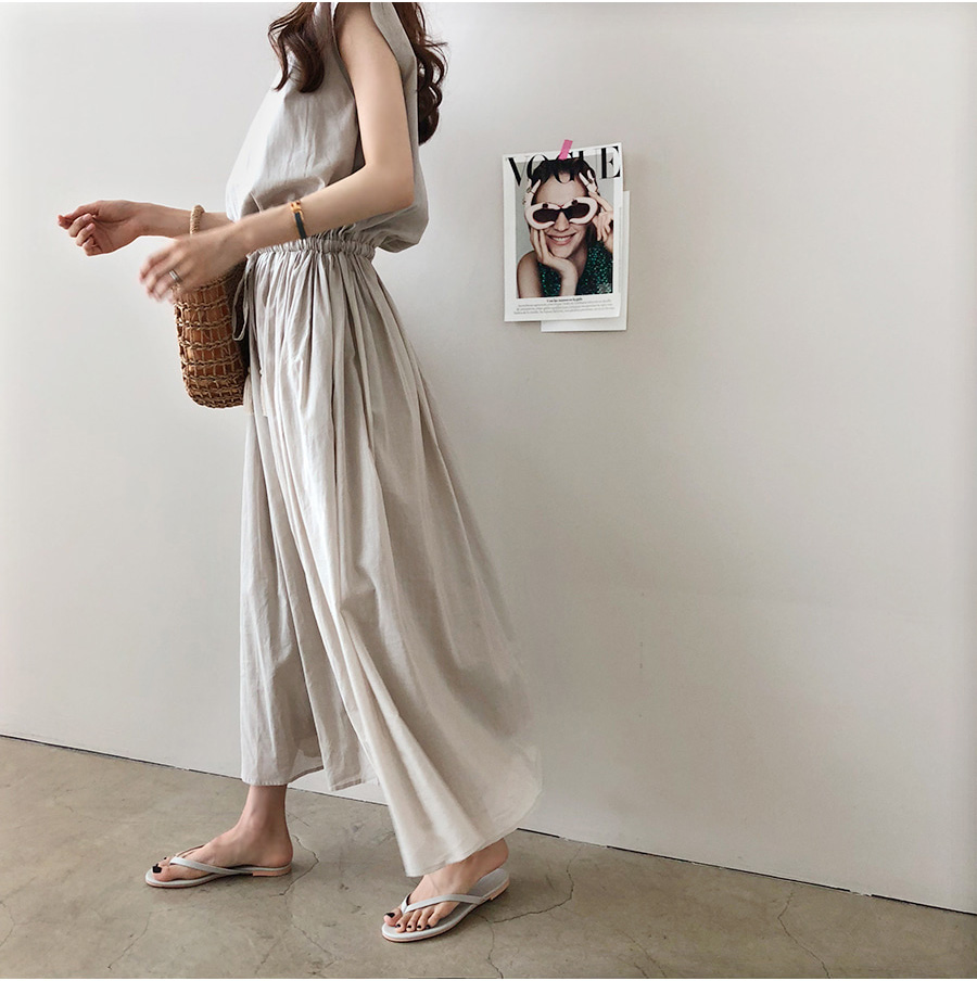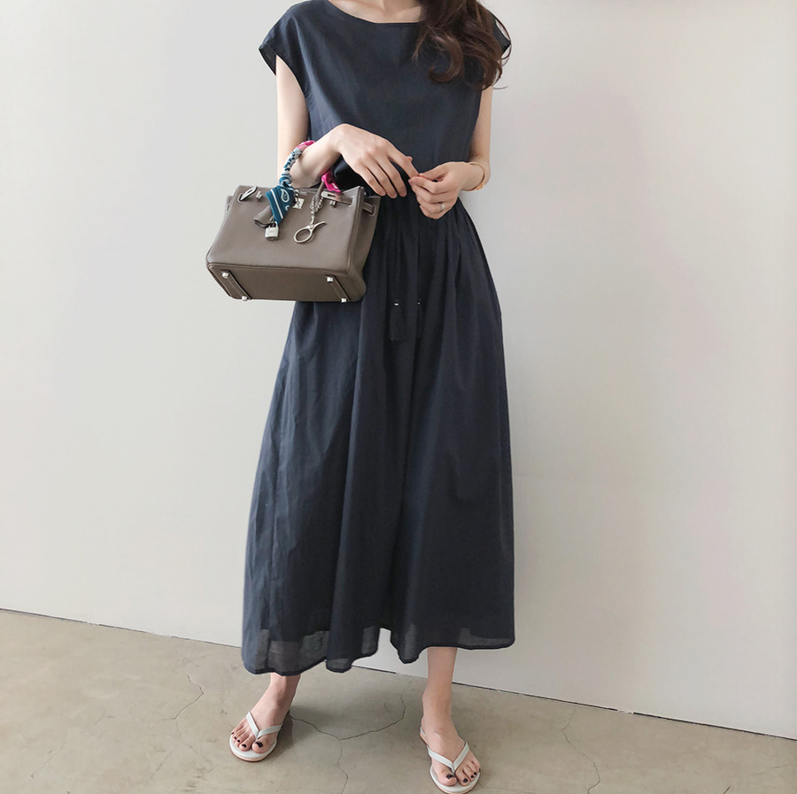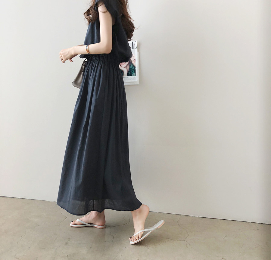 洋氣可收腰寬鬆大碼棉麻無袖拖地洋裝