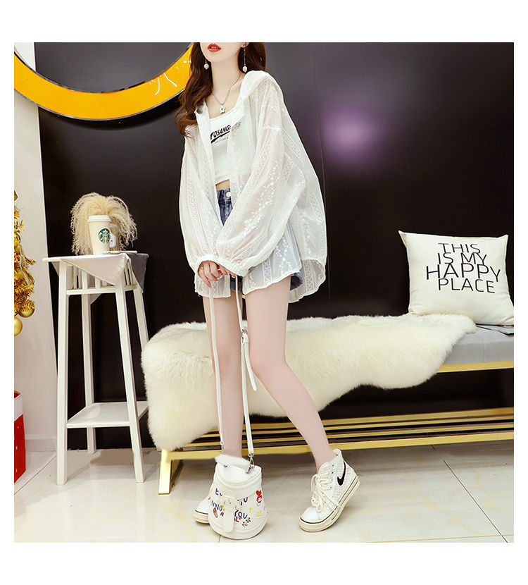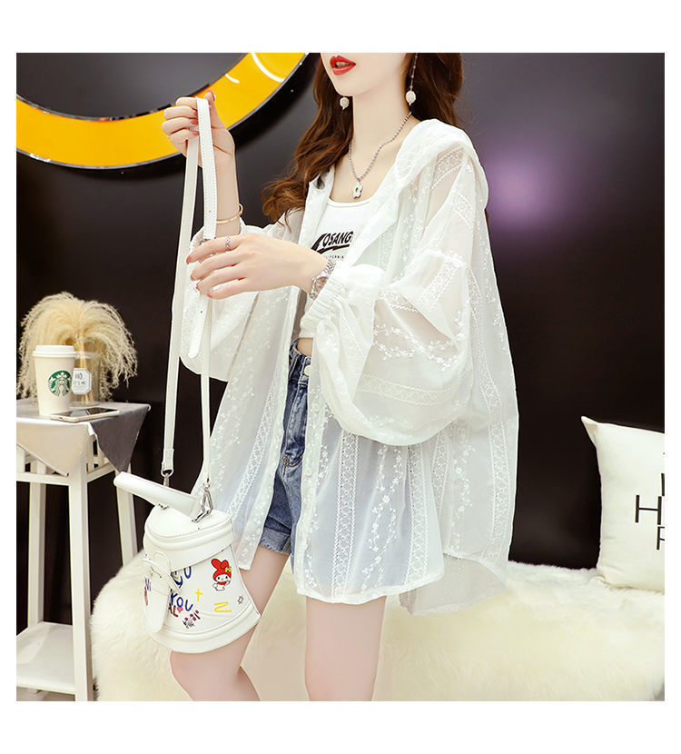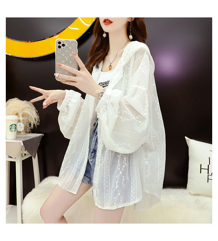夏季連帽薄款小眾設計感蕾絲鏤空防曬開衫