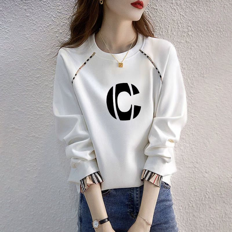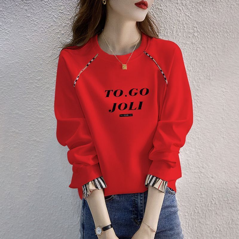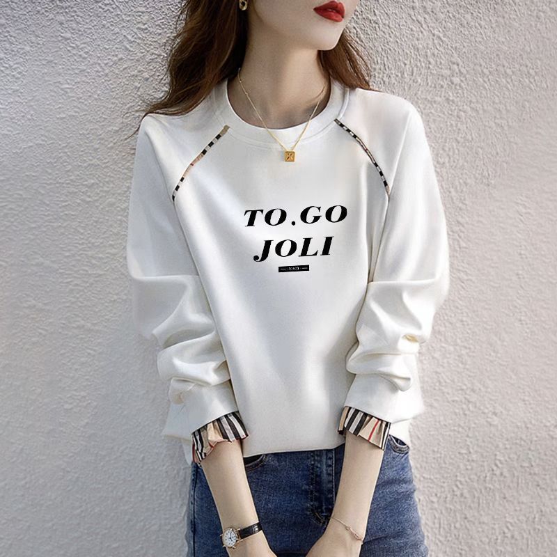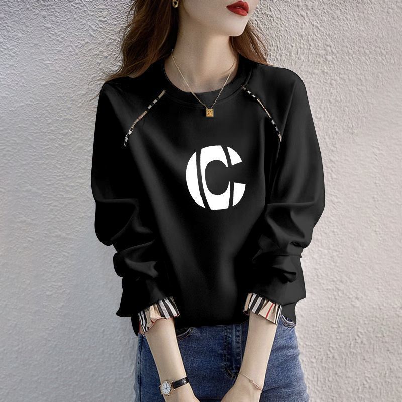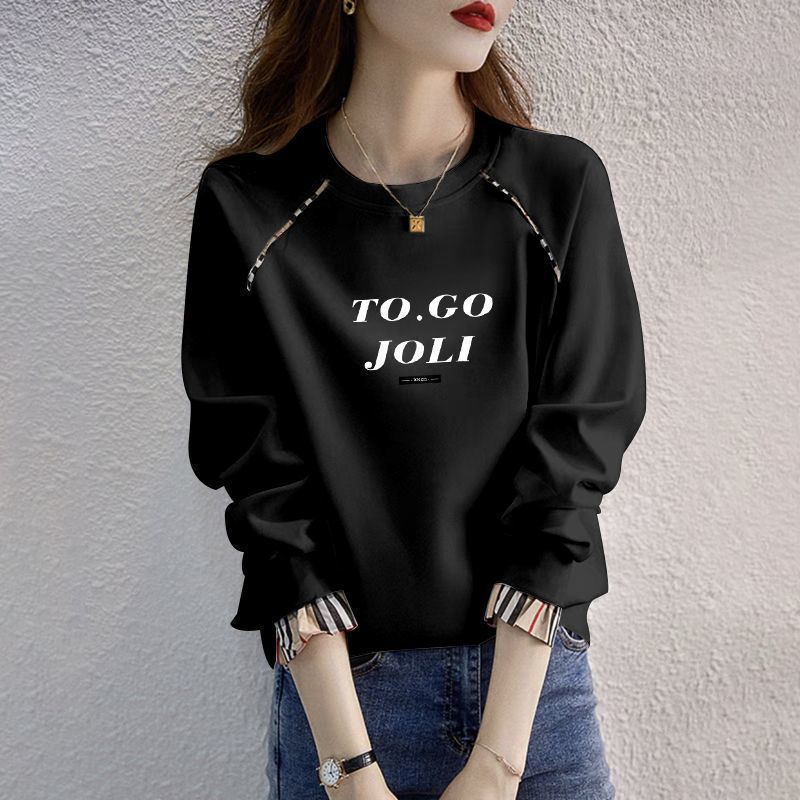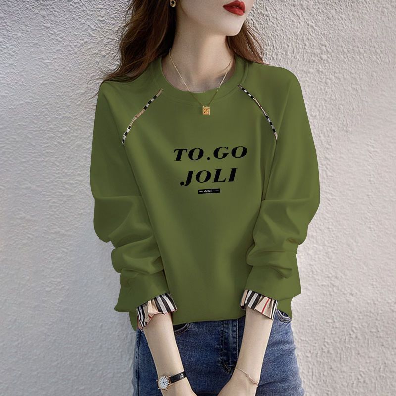 簡約休閒字母開叉洋氣寬鬆中長款打底長袖T恤