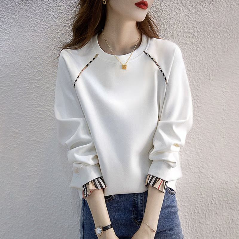 薄款純棉韓版無帽寬鬆套頭圓領假兩件長袖T恤
