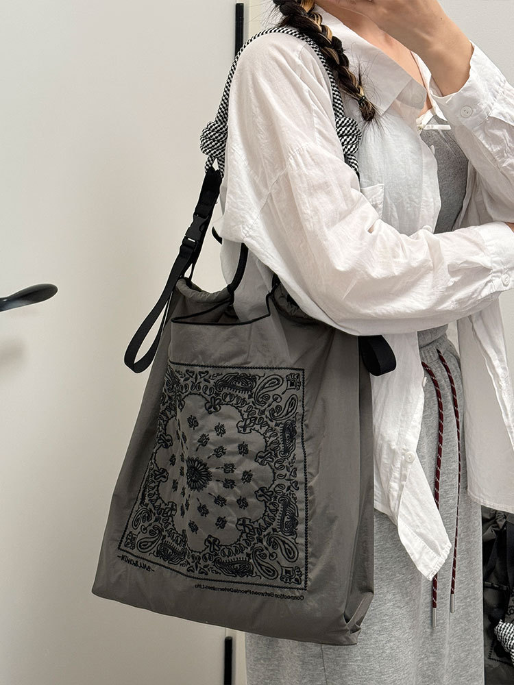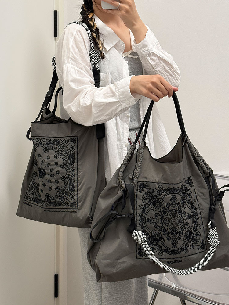 腰果花刺繡購物帆布手拎包尼龍斜挎可折疊便攜手提單肩包