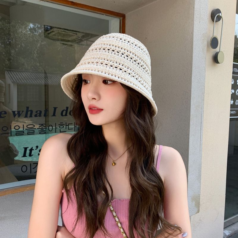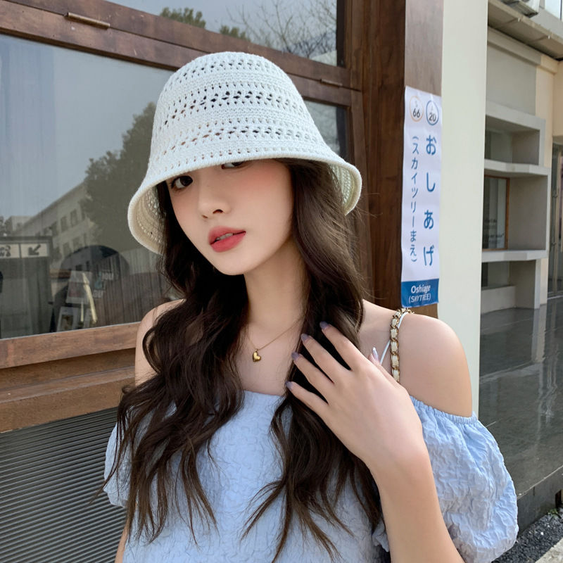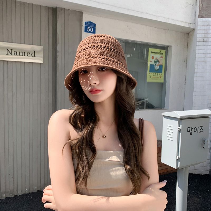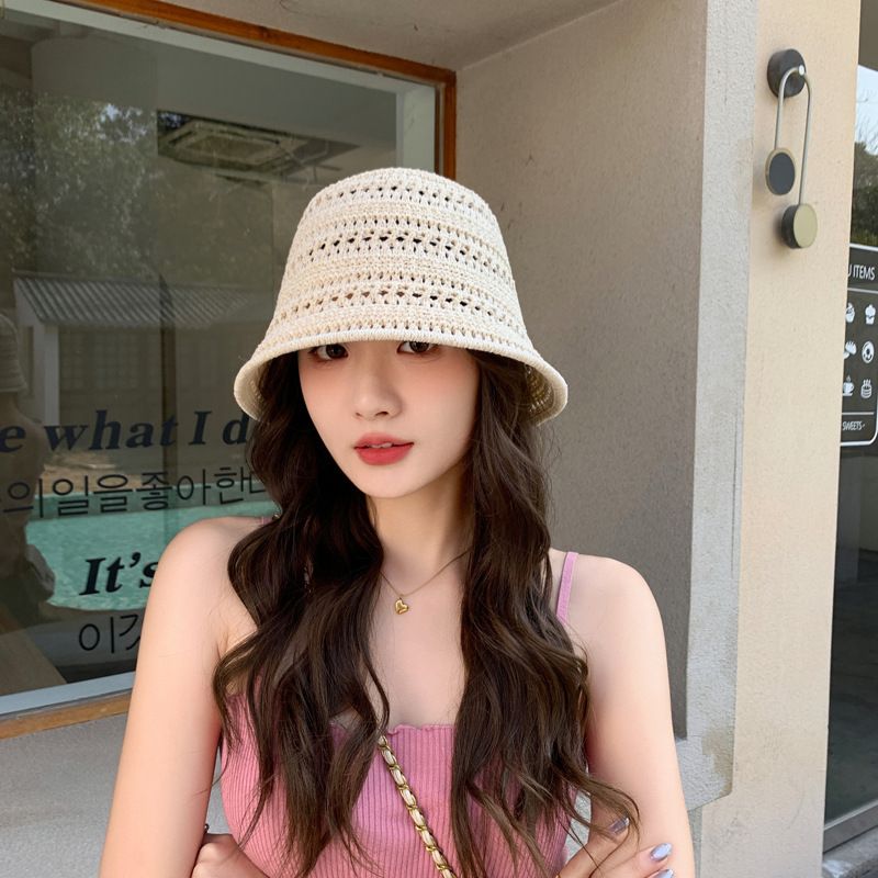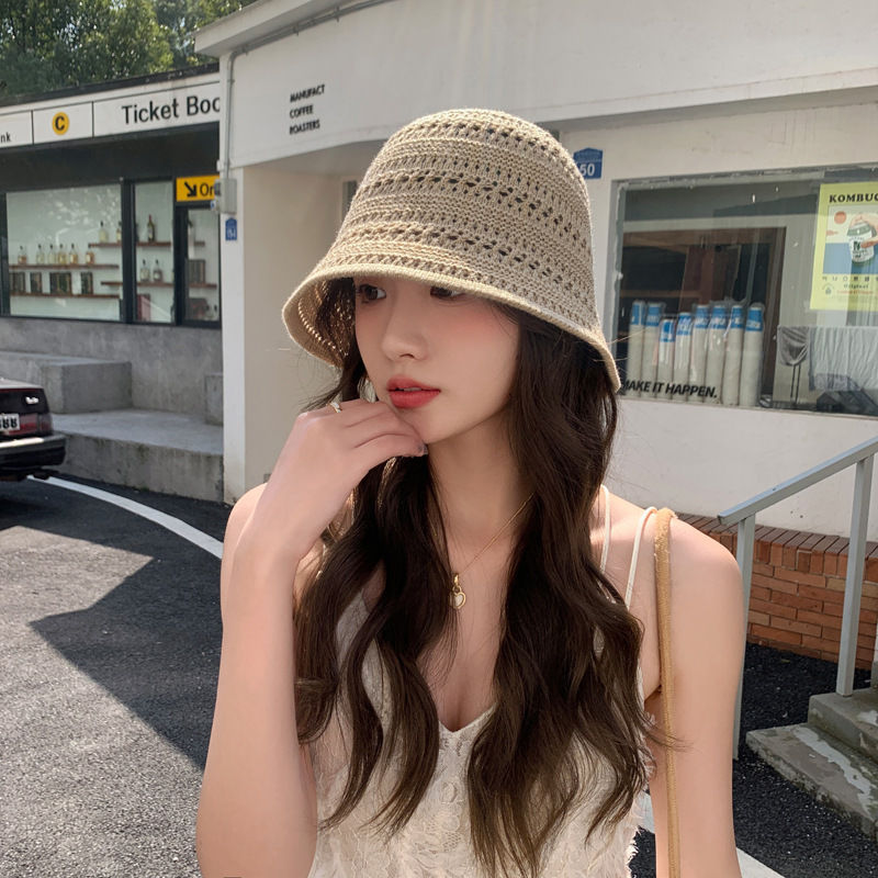 鏤空漁夫帽透氣針織防曬盆帽遮陽帽