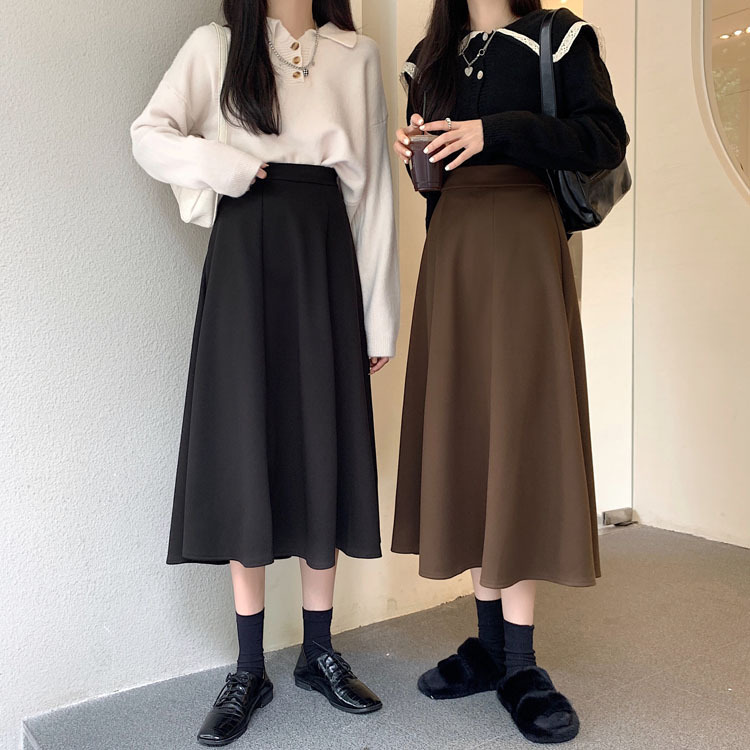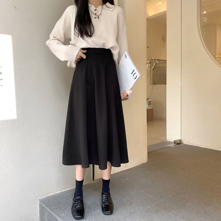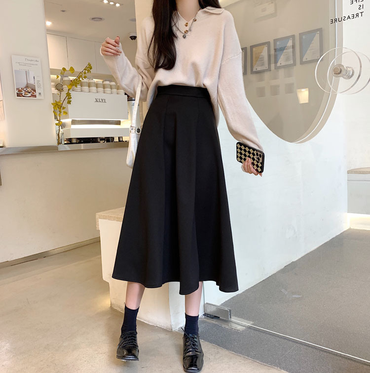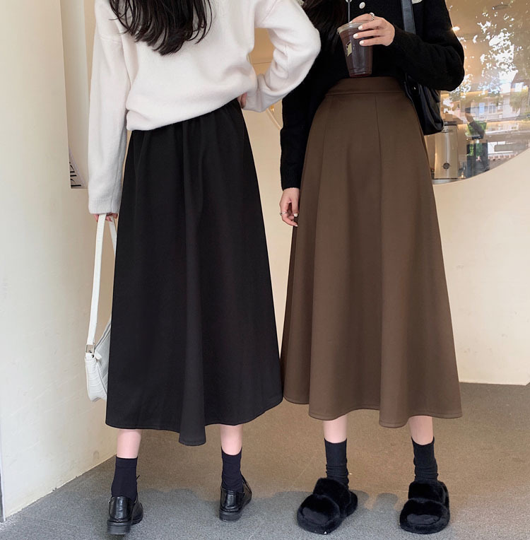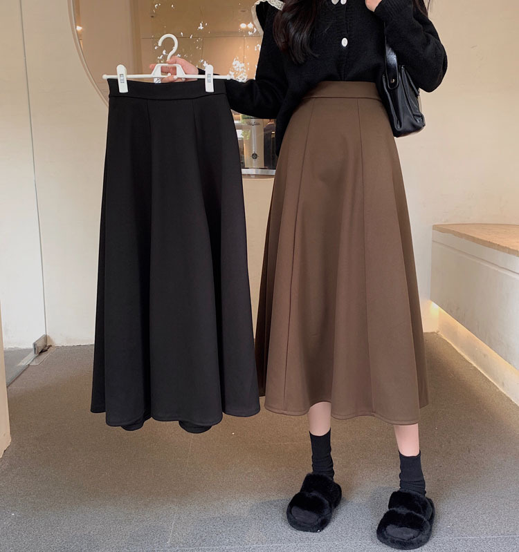 純色簡約高腰洋氣寬鬆A字半身長裙