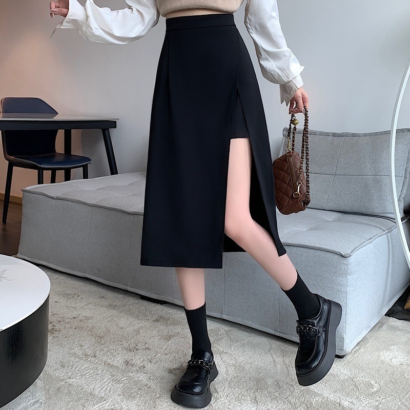 高腰包臀舒適顯瘦百搭中長款不開叉A字半身裙