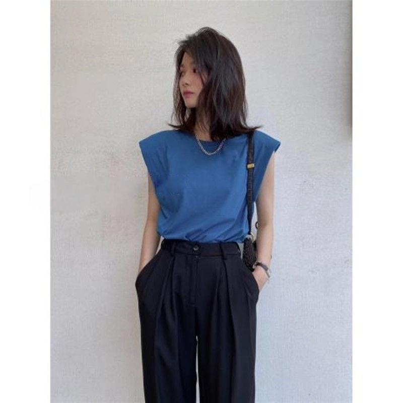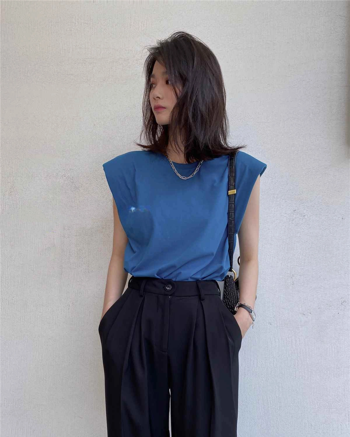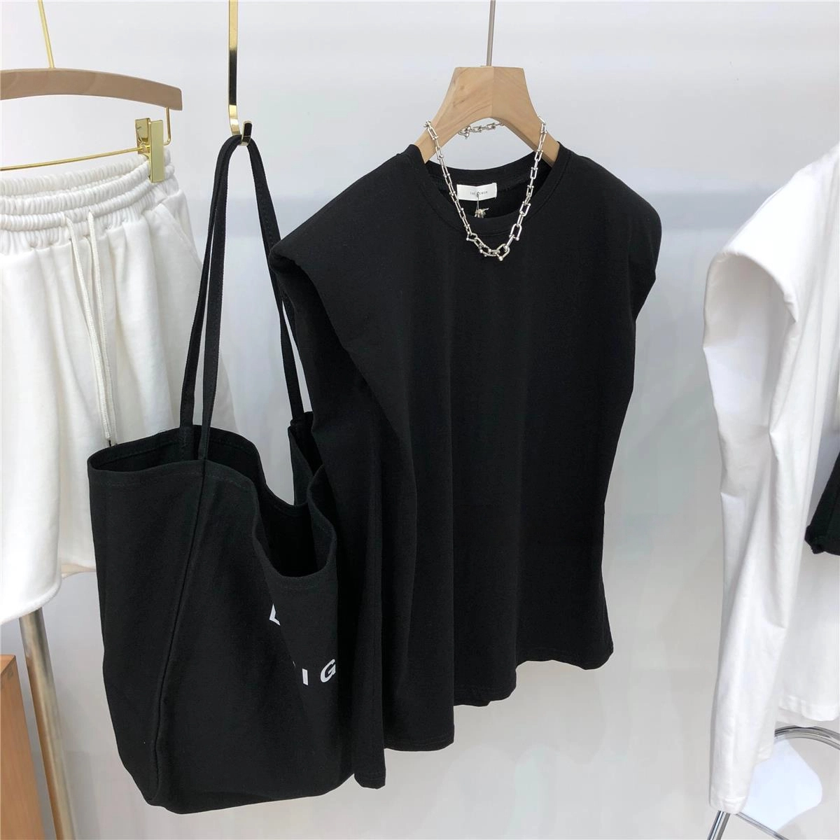 純棉韓系chic顯瘦百搭寬鬆無袖墊肩設計背心