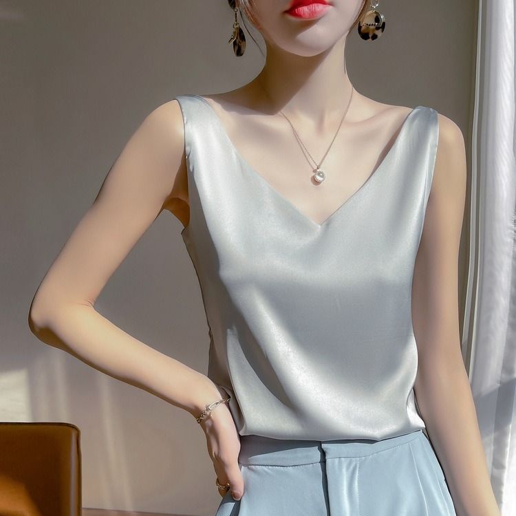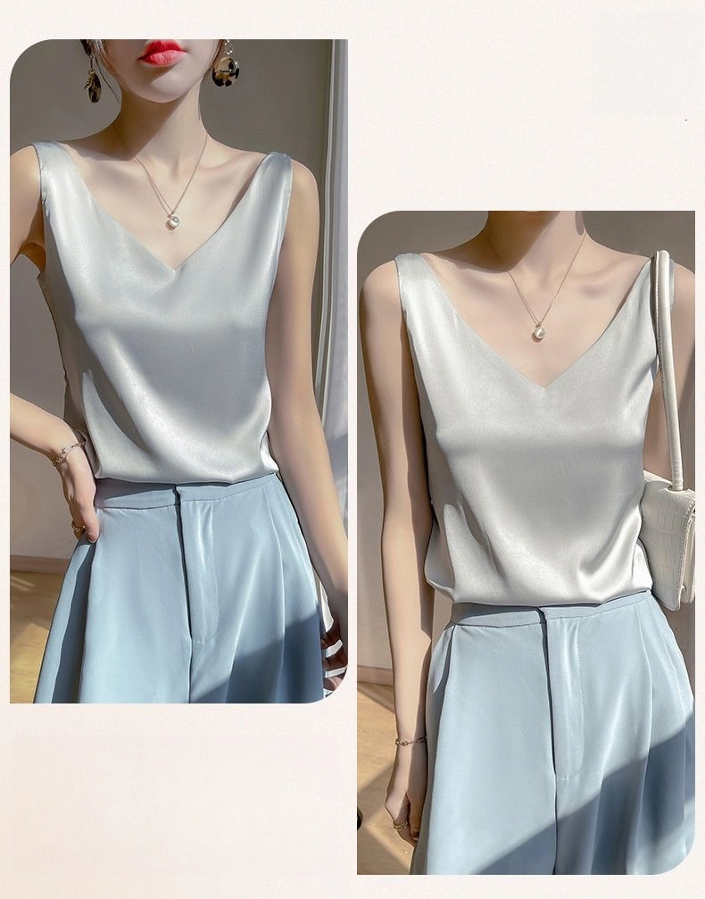 醋酸緞面V領時尚百搭絲內搭無袖吊帶背心