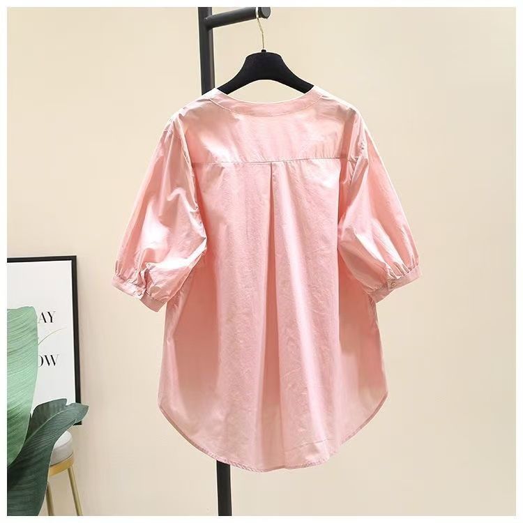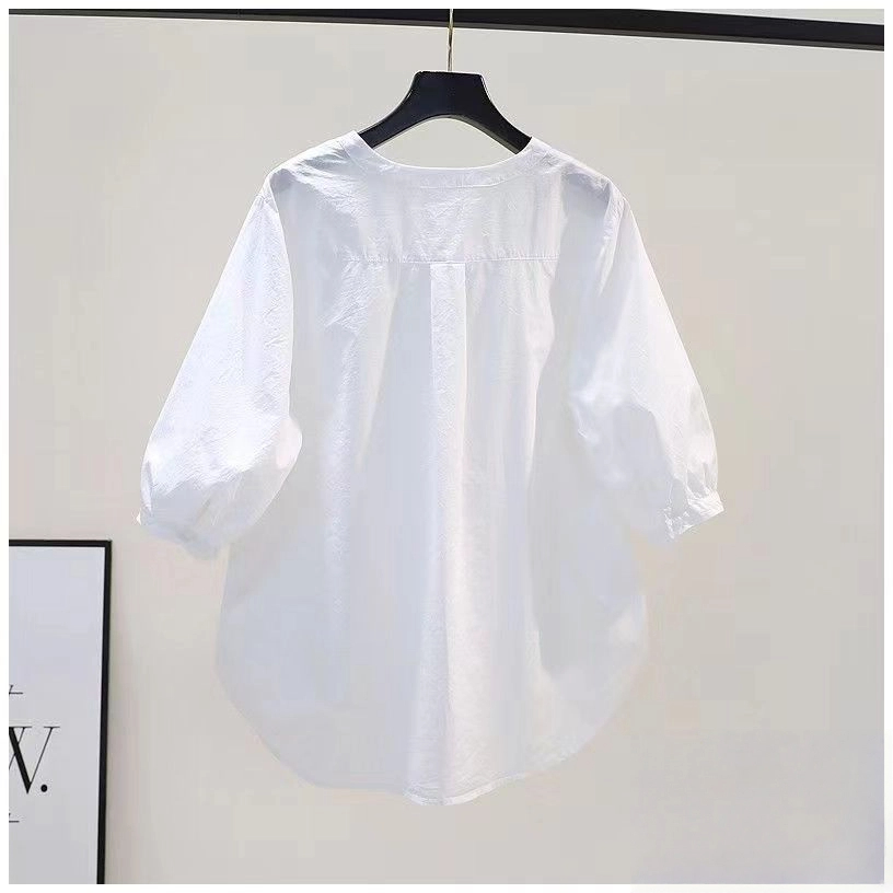 日系艺文通勤百搭薄款防曬寬鬆顯瘦休閒中袖襯衫