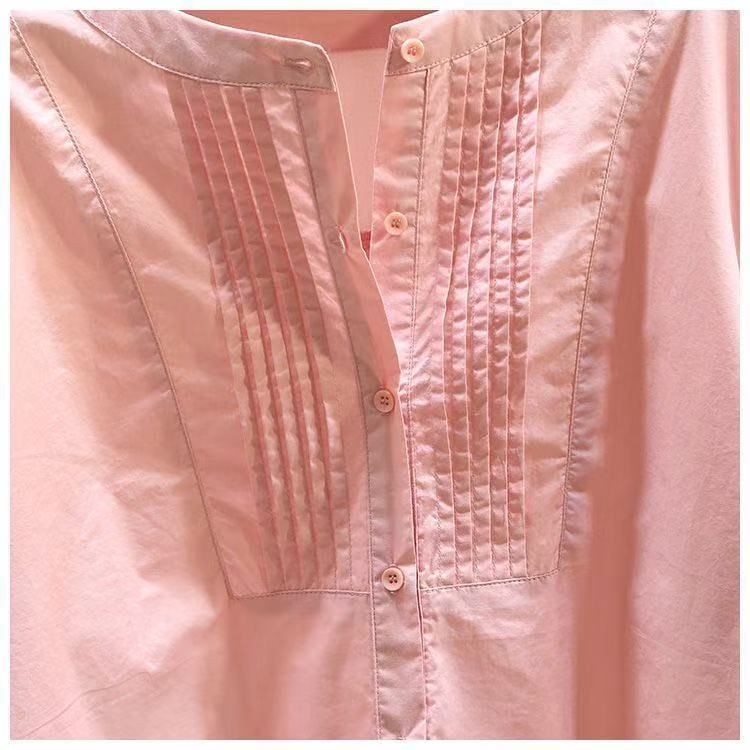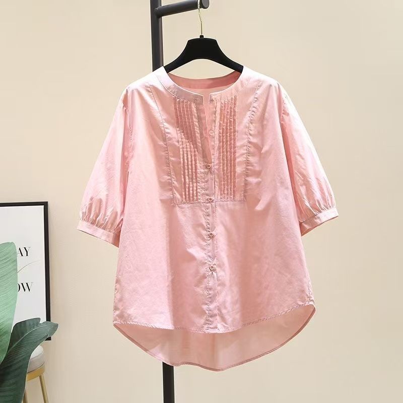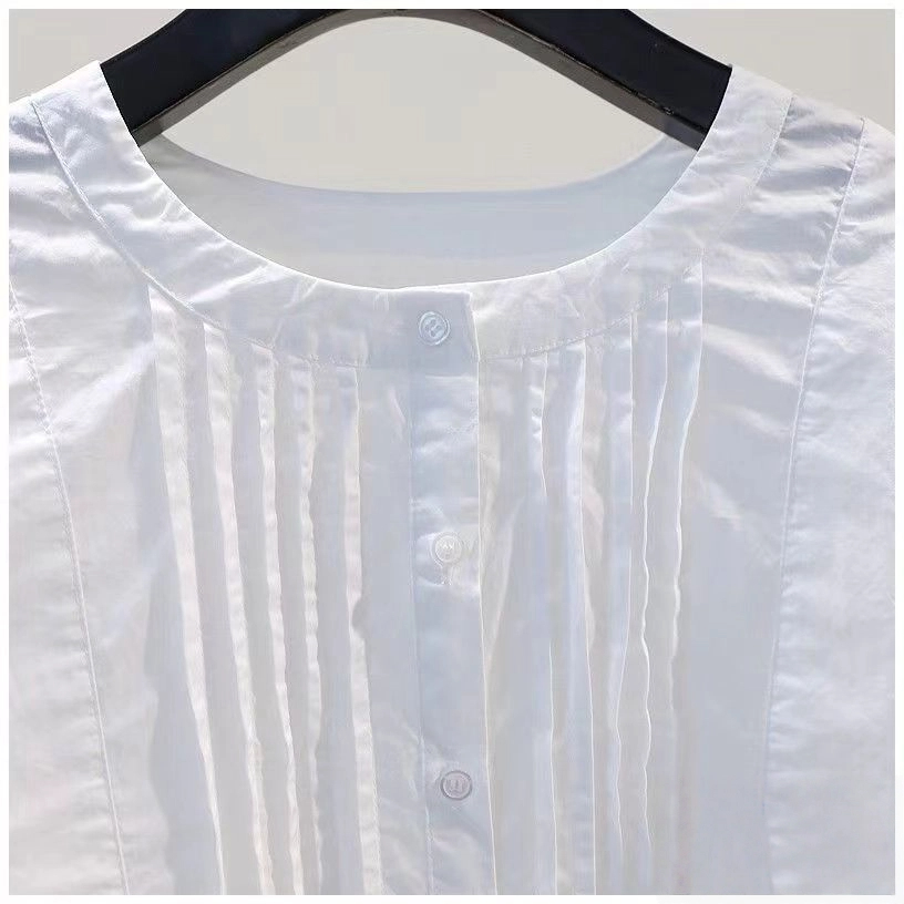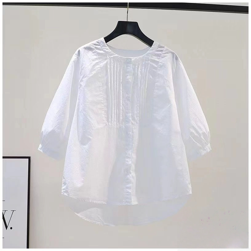 時尚設計感褶皺圓領七分袖休閒百搭襯衫