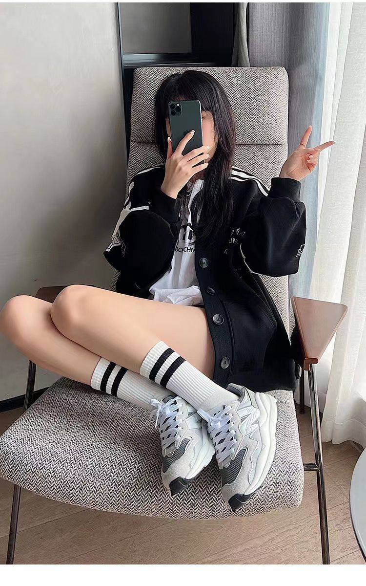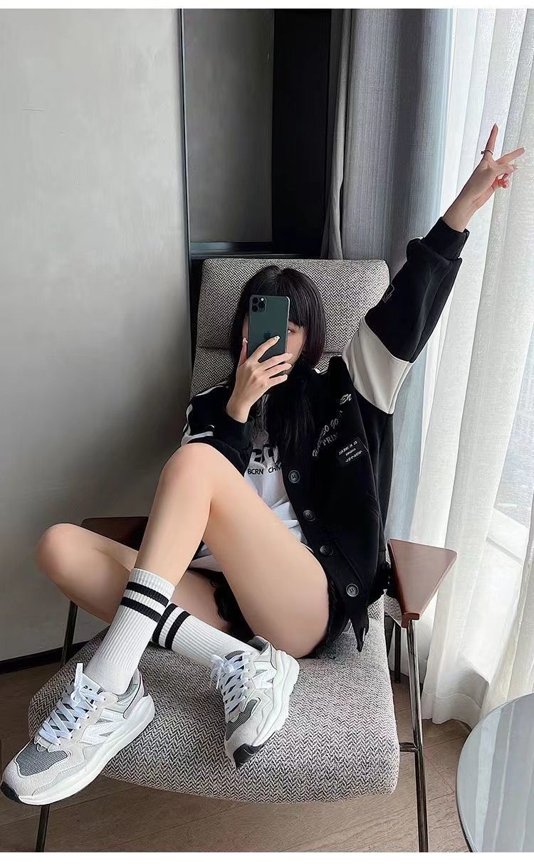 簡約休閒字母開叉洋氣寬鬆中長款打底長袖T恤