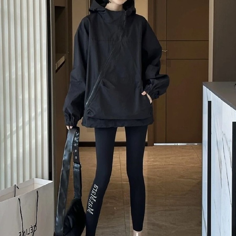 美式防風衝鋒休閒斜拉鍊設計感小眾連帽夾克