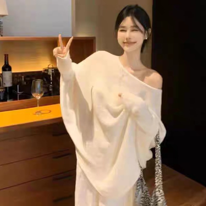 慵懶風V領不規則設計感蝙蝠袖針織衫