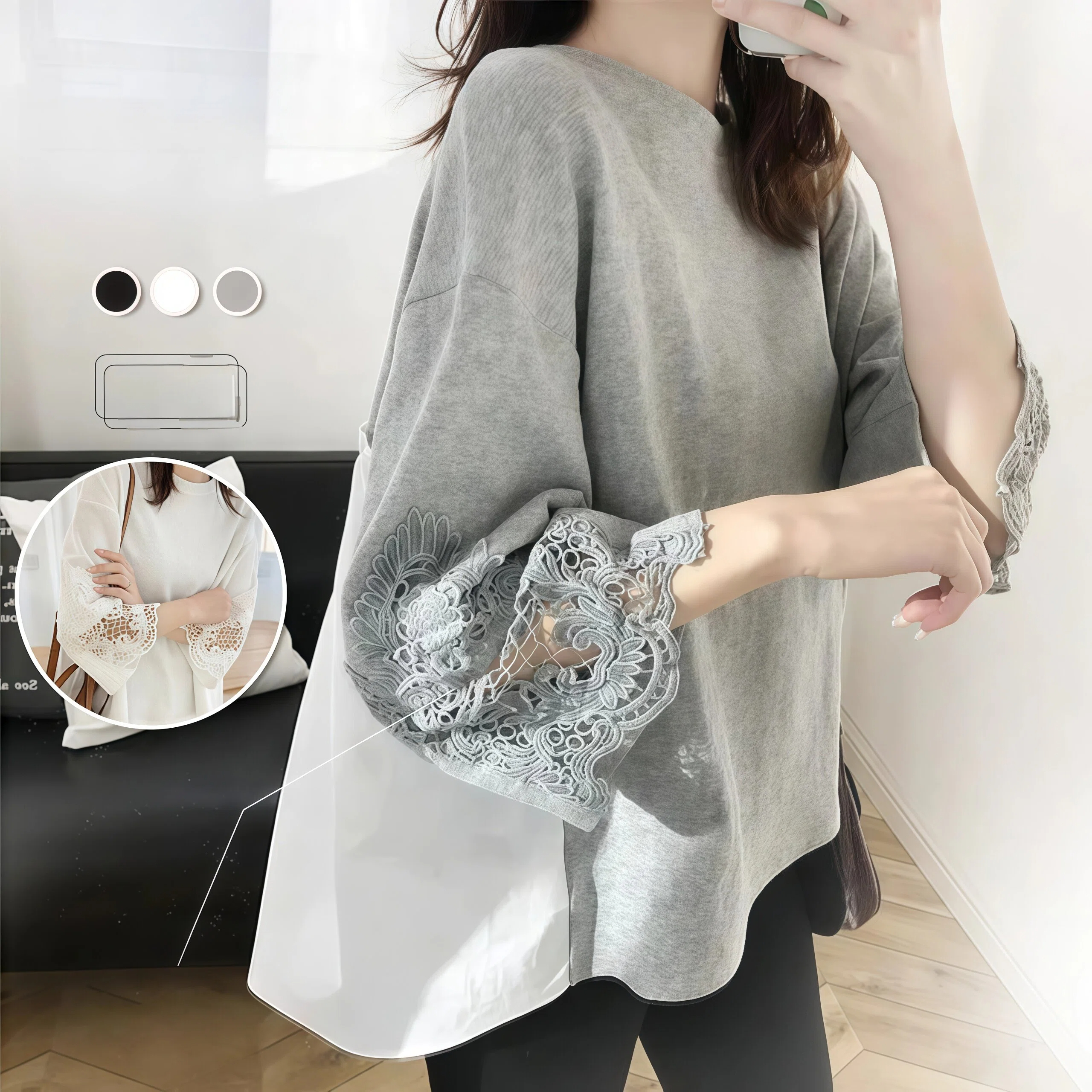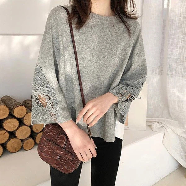 簡約大碼寬鬆休閒不規則長袖T恤