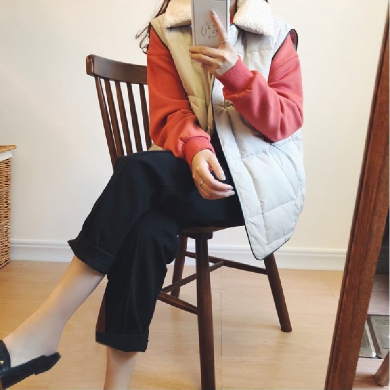 寬鬆直筒休閒加厚哈倫毛呢蘿蔔長褲