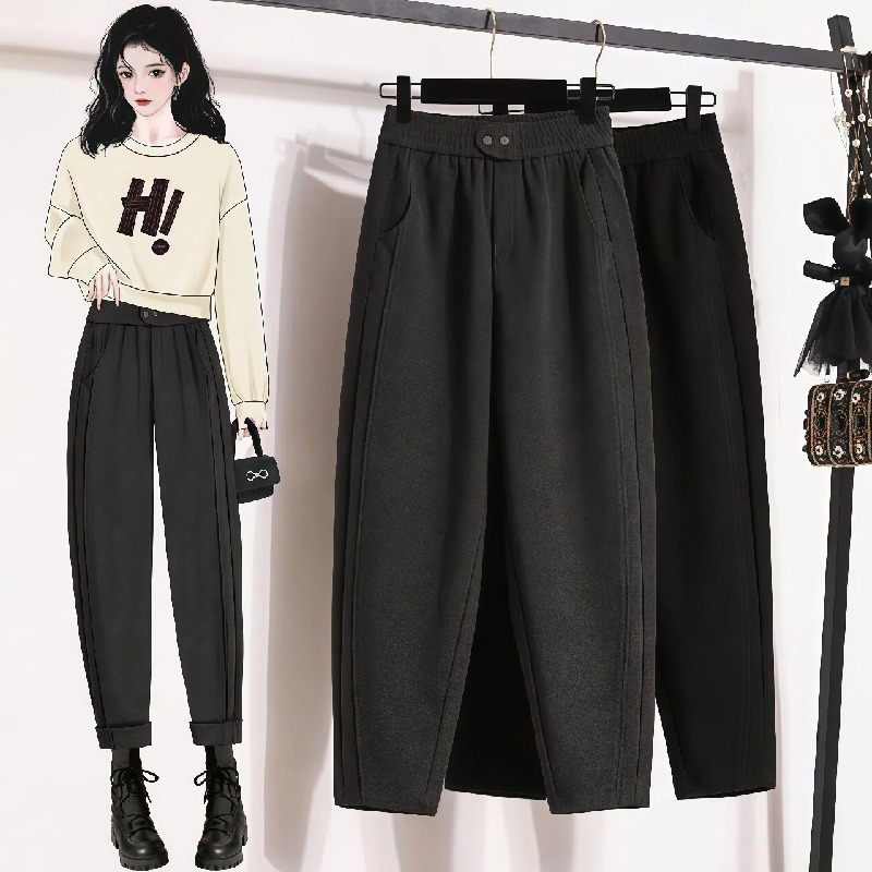 寬鬆直筒休閒加厚哈倫毛呢蘿蔔長褲