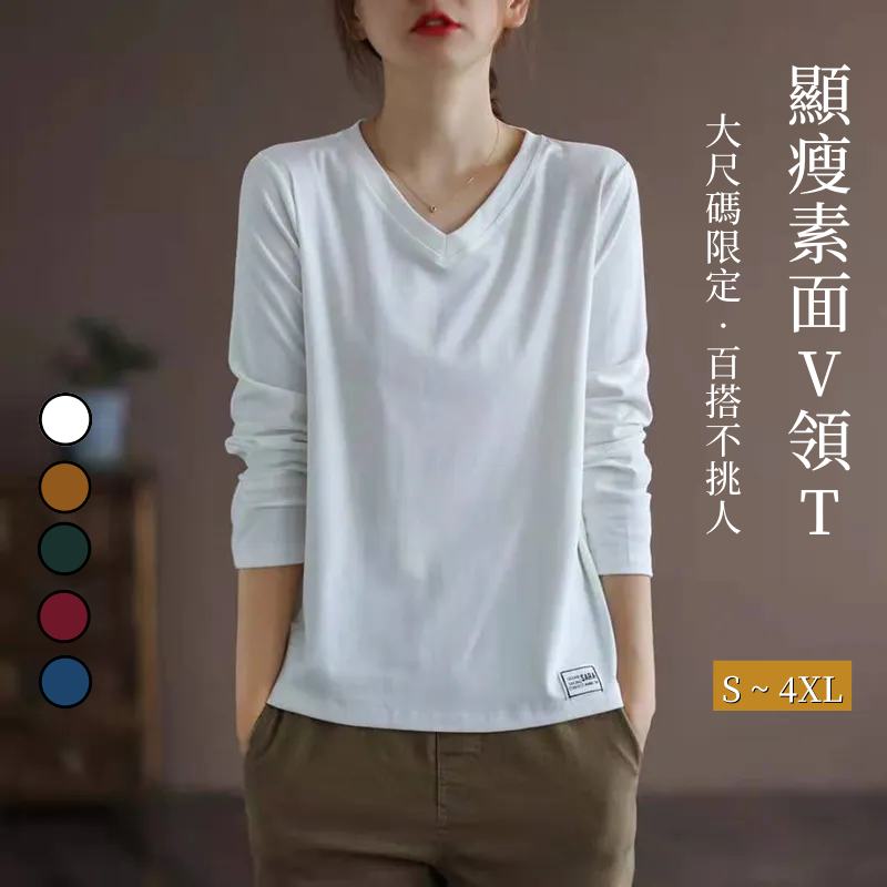 純色v領百搭寬鬆顯瘦打底長袖T恤