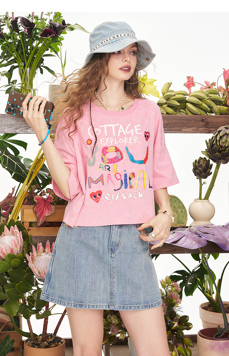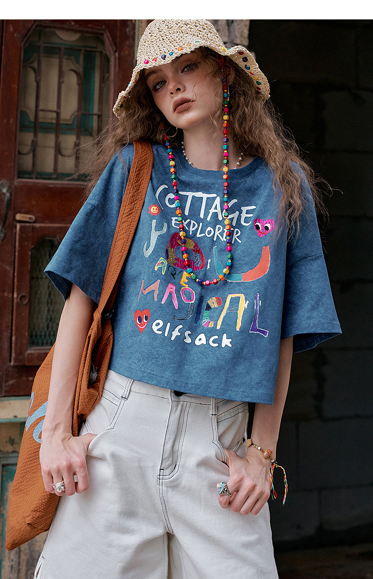 寬鬆休閒字母塗鴉印花短袖t恤